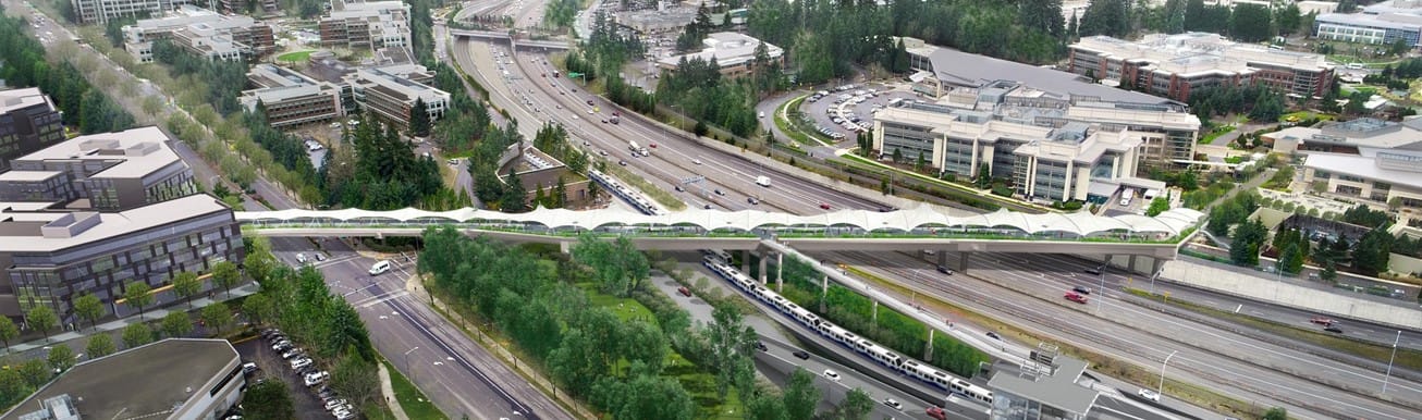 East Link’s start of service also coincides with a number of pedestrian and bicycle access improvements along the route, from the new Eastrail bridge over NE 8th Street in Bellevue, to a pedestrian and bike bridge over SR 520 at Overlake Village Station in Redmond, to the massive Microsoft-funded covered overpass connecting to Redmond Technology Center Station that provides a direct connection between the 520 Trail and the light rail station.