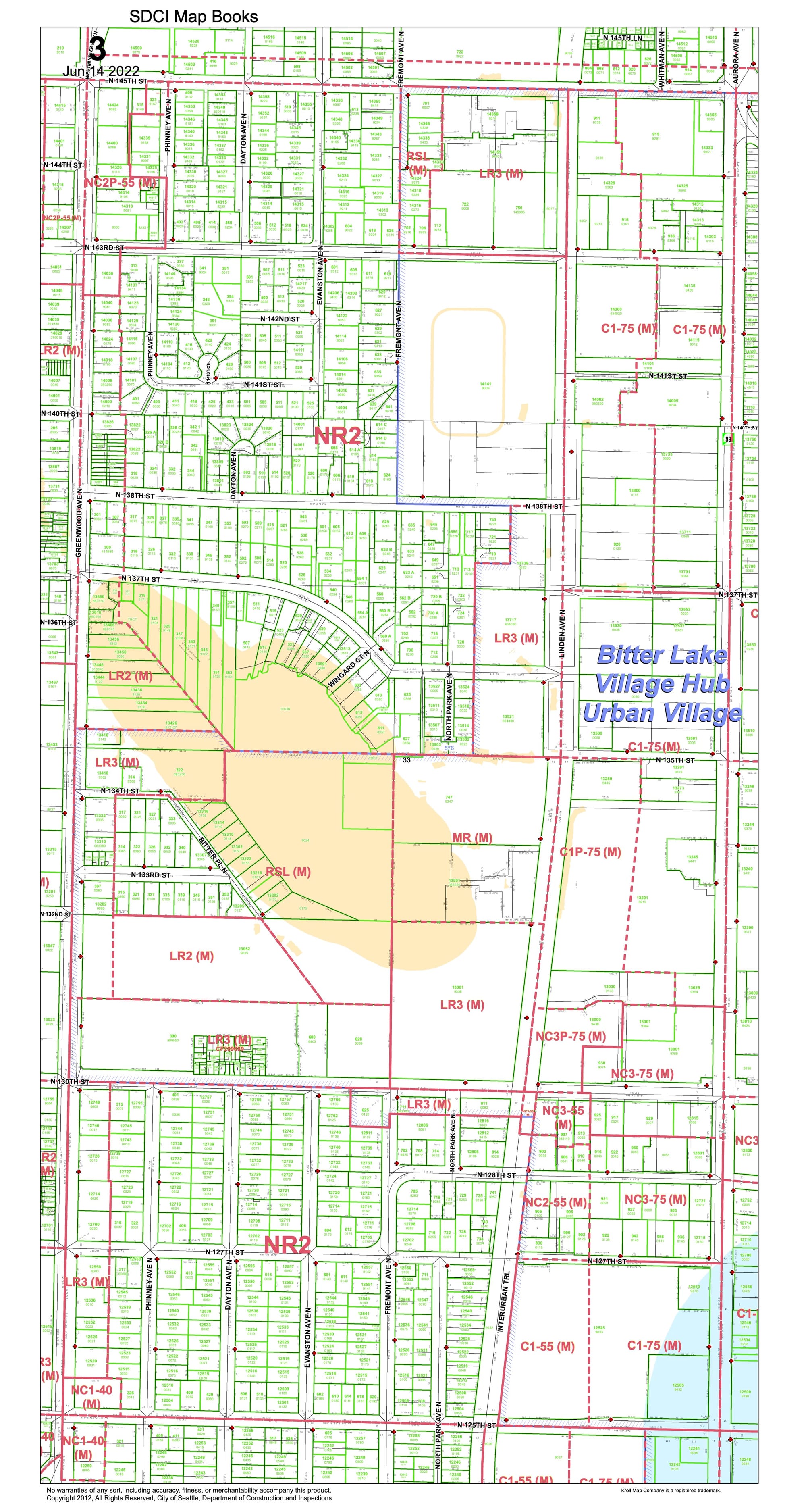 The city offers maps to describe two other, somewhat contrasting views of what is in the zoning ordinance. The Seattle Department of Construction and Inspections (SDCI) publishes a “color coded, birds-eye view of Seattle’s zoning” that is both easy to understand and wildly imprecise. Such imprecision is shown in the other document, or technically 204 documents they publish that comprise the official zoning map book.