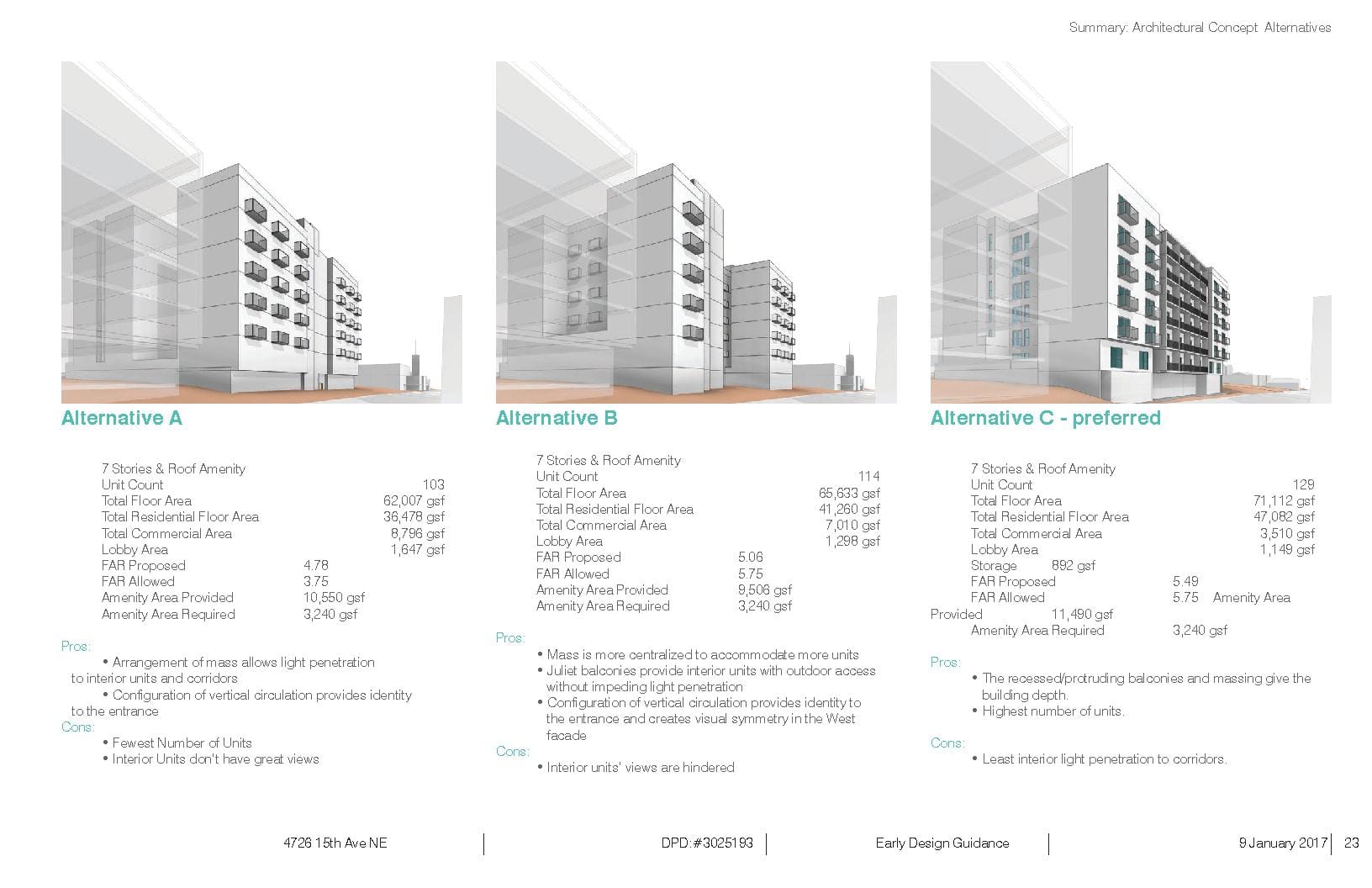 This proposal requires a contract rezone from LR3 to NC2-65 which would trigger the MHA-R requirement. That means the project would provide at least twice as many units guaranteed affordable for 75 years than currently exist on the site (and likely not affordable given the location). The developer could either pay the in-lieu fee or provide on-site affordability. If the rezone is determined to be of the M1 variety, then 9 percent of units would be below 60 percent of area median income or a $20 per square foot fee would be paid. That’s would be more than a million dollars based on Alternative C’s total square footage minus the commercial floor area which falls below the 4,000 square foot allowance for street-level retail. (For more on MHA details and tweaks read this.)