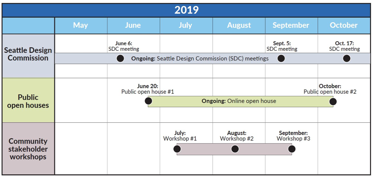 Community participation in the design process has been ongoing since 2010 (and maybe earlier) when the first workgroups were convened to submit feedback on project concepts, and that community participation continues today with community stakeholder workshops and an online open house running through Fall of 2019.