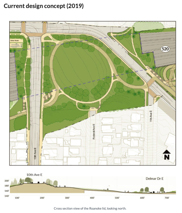 - A community-connecting highway lid between 10th Avenue East and Delmar Drive East, with landscaped open space;