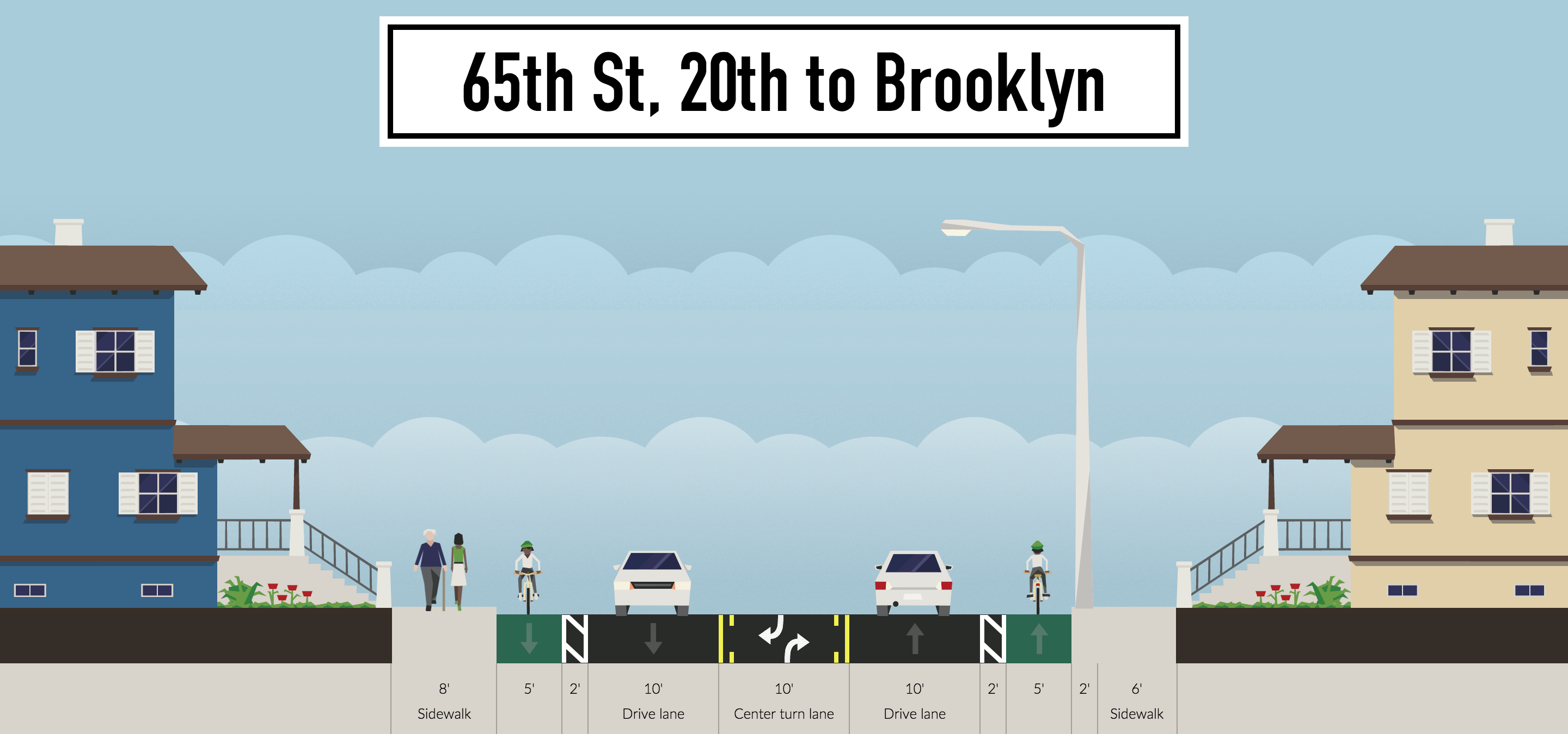 Removing a lane would reduce the perceived lane width to, along with lower post speed limits, design safer speed into the corridor. Bus stops would act as a traffic calming measure in a narrower NE 65th St road design; motorists would have to wait behind while transit users deboard and board buses. Finally, a protected bike lane could be incorporated into the design similar to Dexter Avenue to calm the street, although parallel streets have instead been identified for improvements in NE Seattle Greenways map and in the Bike Master Plan. The Cascade Bicycle Club, on the other hand, has argued a protected bike lane is the best design near Roosevelt Station.