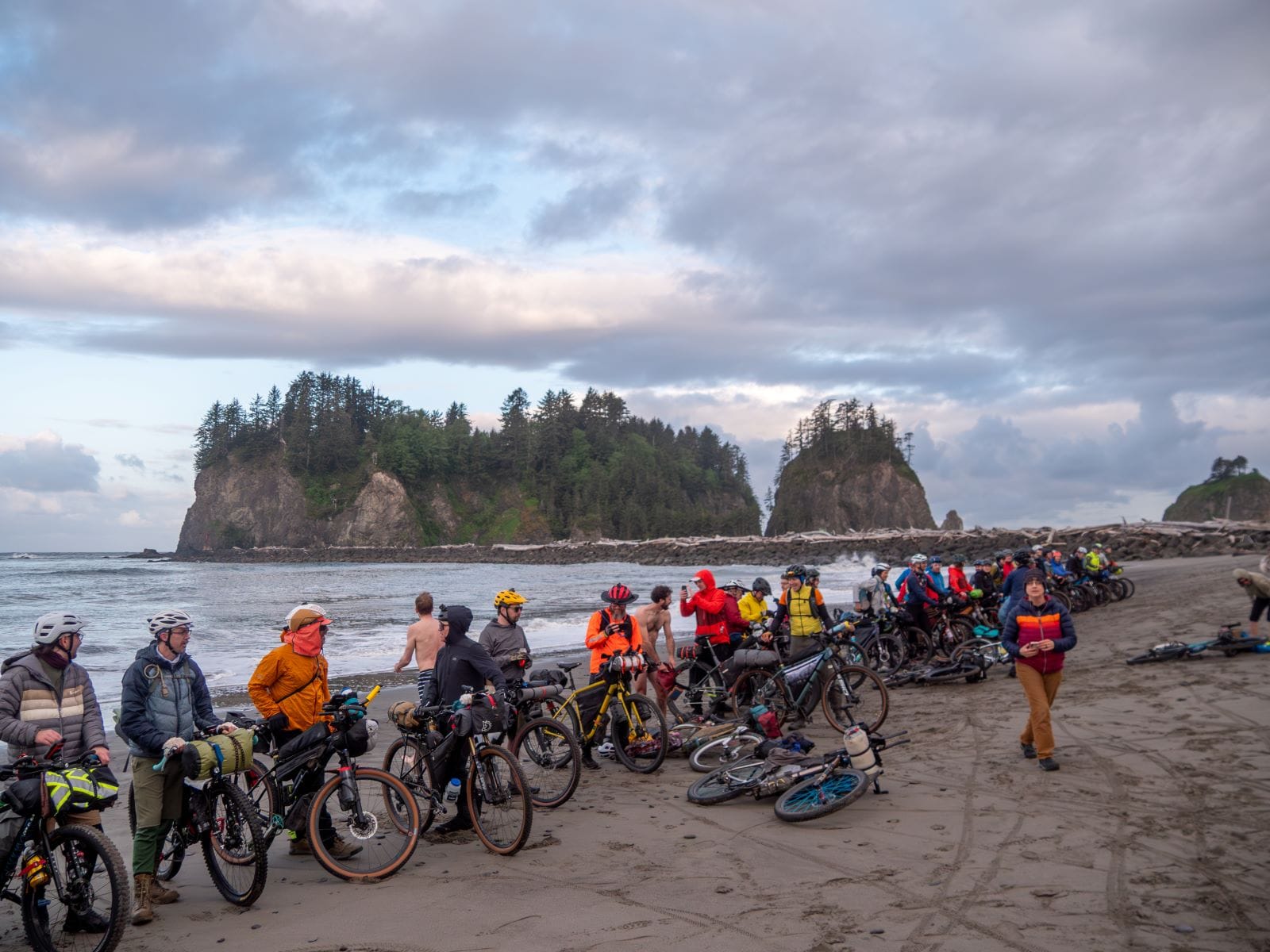 But in 2017, a small group of riders took on the route together in what’s known as a “grand depart,” a mass start in La Push. Since then, the race has quietly grown, year by year. In 2024, 54 riders registered; this year, that number has grown to 138.