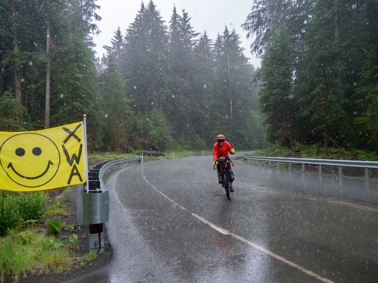 Flapping in the western winds of La Push, a yellow flag bearing a huge smiley face and a printed “XWA” was propped on the back of Brook Muldrow’s RV. He had driven all the way from Oklahoma to serve as a trail angel, someone who supports riders along the route.