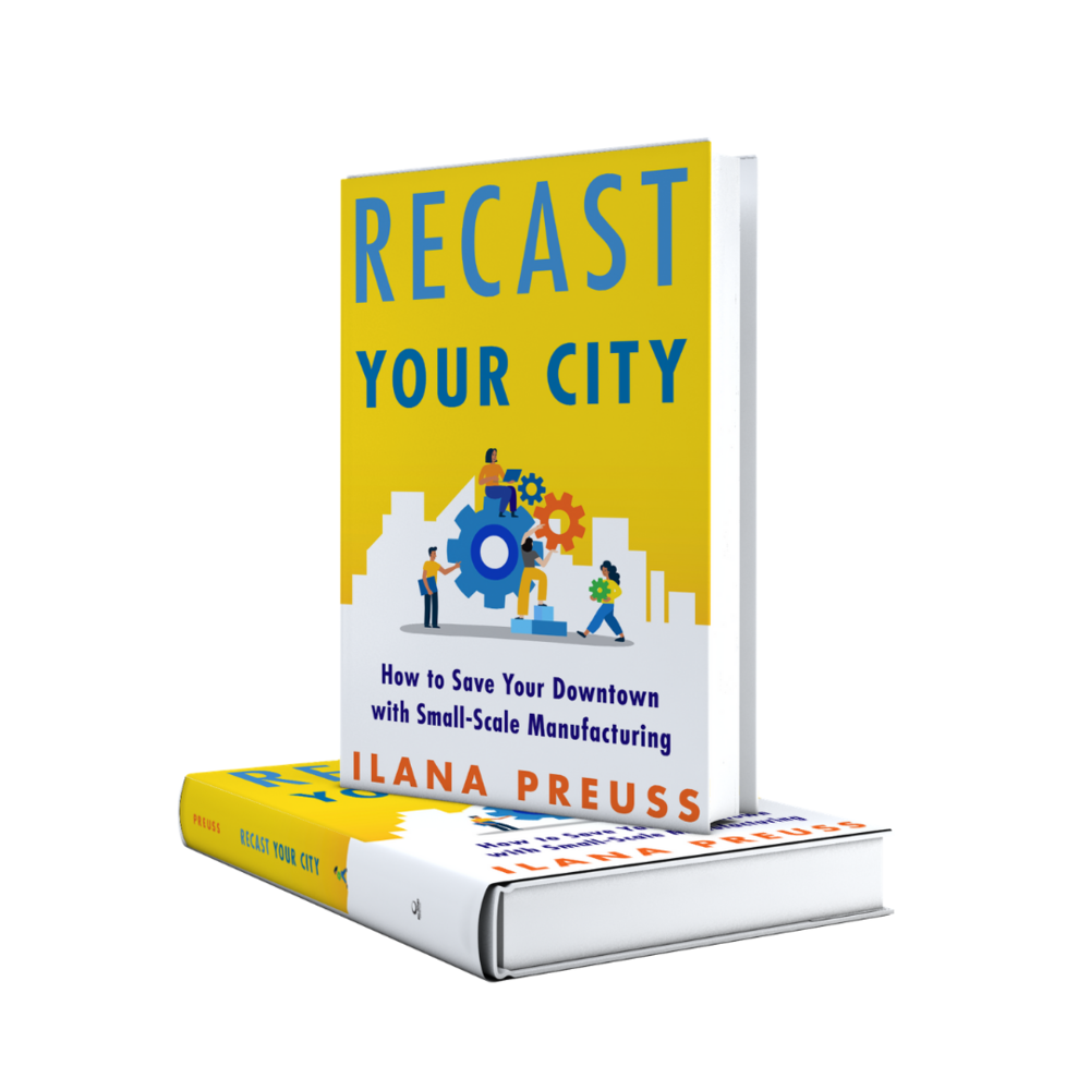 Recast Your City is subtitled “How to save your downtown with small-scale manufacturing,” which gives the impression that it’s a one trick book. But its author Ilana Preuss calls it a “community development self help book,” and it actually pulls off this feat. To do so, the book takes some very interesting turns, including a scathing critique of current economic development policies as well as a guide to having authentic conversations across communities.