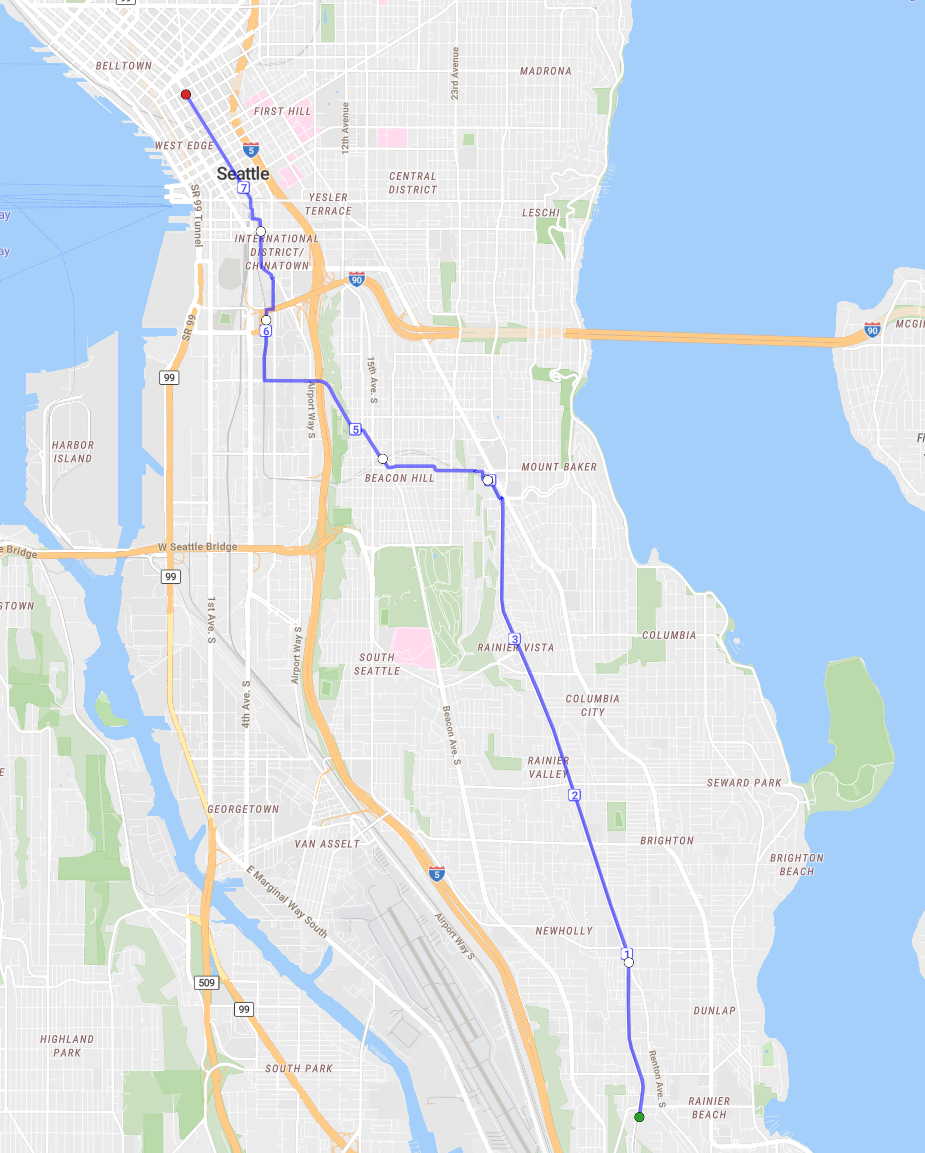 Rainier Beach Station -> Beacon Hill Station -> Chinatown/International District (6.6 mi)
