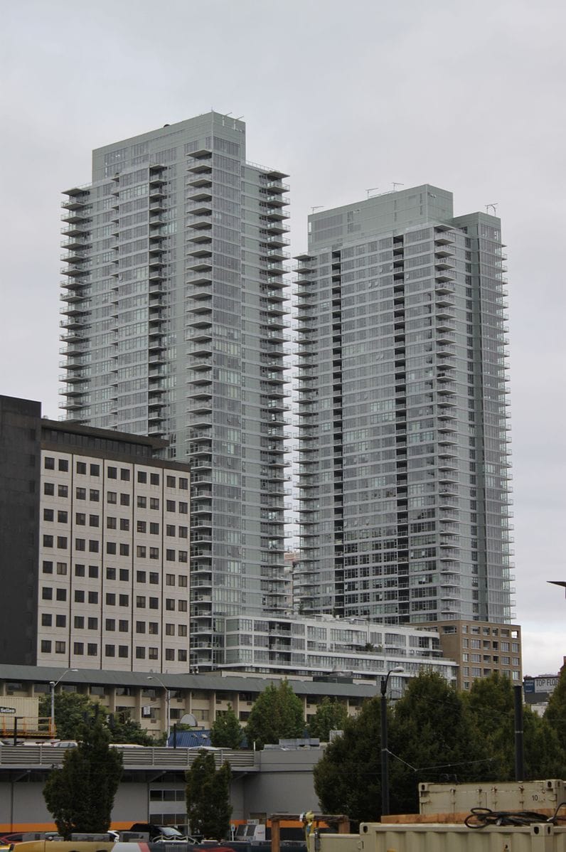 Many people lament the sameness of many of the building being constructed. Most are what I refer to as extrusion buildings–it’s as if a shape was drawn and then pushed through a Play-Doh Fun Factory to 40 floors. This is a very functional way to build and makes sense from a structural perspective, and in the hands of skilled designers they usually end up with a simple elegance. But many of the new highrises have moved beyond this and are striving for a more sculptural quality be it the sinuous curves of 1200 Stewart, or more expressiveness within an angular form such as on Nexus, or the subtle tensions achieved by 707 Terry.