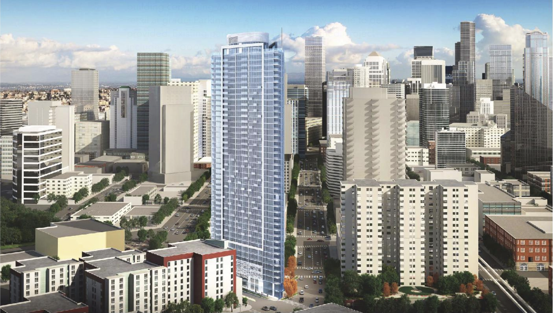The project is 365 apartments, retail, and 248 parking stalls in two 23-story tall towers in Yesler Terrace overlooking I-5. It is notable for several reasons: its the first highrise development in the Yesler Terrace redevelopment, which while zoned for highrises has thus far produced only midrise buildings; it’s designed by Bohlin Cywinski Jackson, a nationwide firm best know for designing Bill Gate’s Medina estate and a lot of Apple stores; and it’s a pretty interesting design, better than most even. With its delicate stilts and curvy facade it strives to be more than the typical extrusion highrises being built in Seattle.