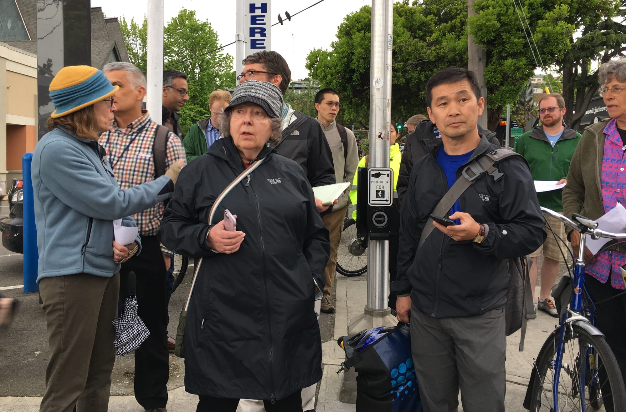 Right away, it was abundantly clear the new signals weren’t working for people on foot. When the group attempted to cross Mercer at 1st Ave N, the signal skipped several cycles and the large crowd waited for several minutes just to cross. This pattern was repeated at various stops along the way and it became clear that something needed to be done.