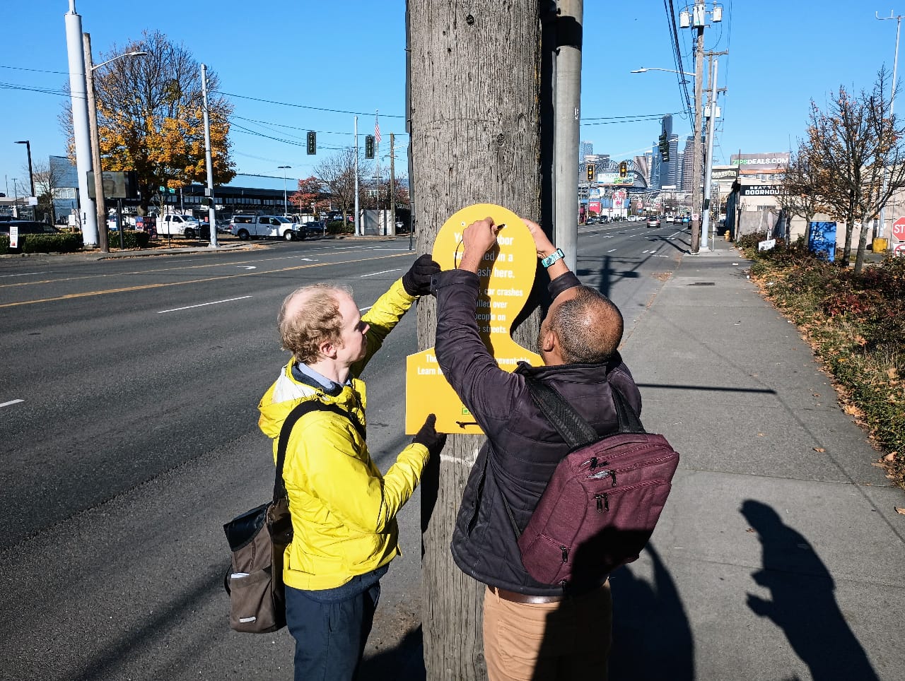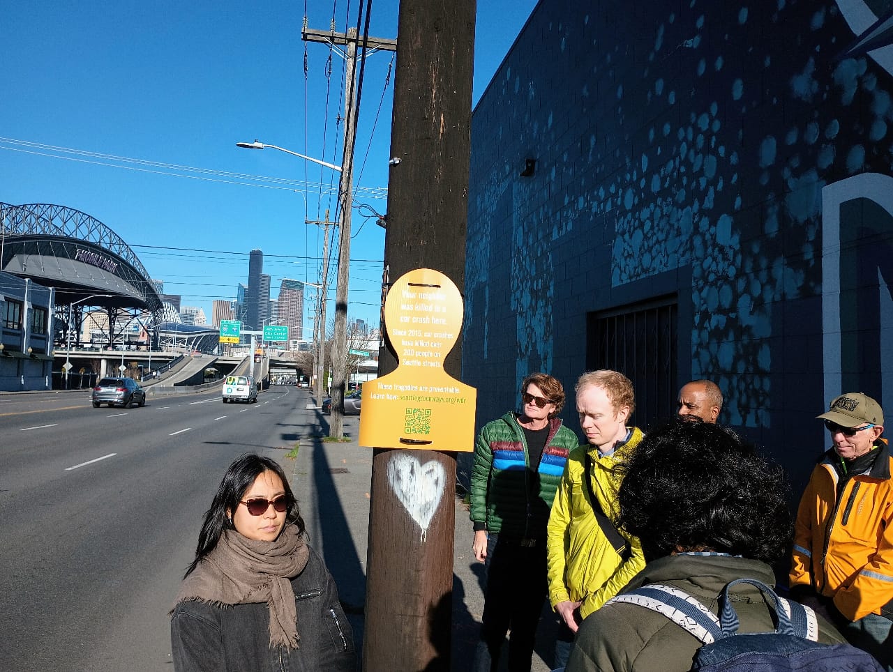By installing close to 230 markers at locations around the city where a fatal crash had occurred since 2015, Seattle Neighborhood Greenways and its grassroots neighborhood advocates brought the reality of the devastating events that happen on an everyday basis on Seattle’s streets to life. The city normally has very few markers to note the places where people were killed just trying to get from one place to another, and the evidence of a crash is regularly swept away quickly after new events occur. But the small signs, mounted to utility poles and traffic lights, each represent a monumental loss.