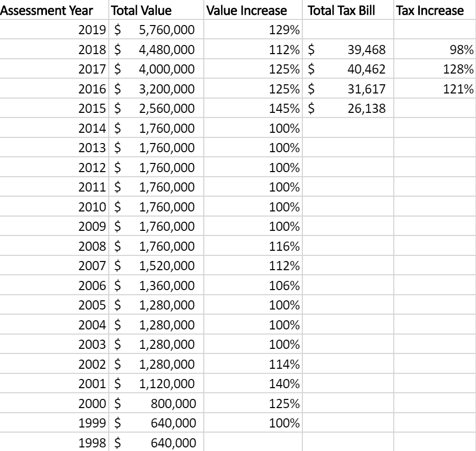 And third, if we compare the assessed values and the tax bill, we can see that the tax bill doesn’t exactly track the value increases. Despite the upzone, despite a valuation increase, their property tax actually decreased for Assessment Year 2018.