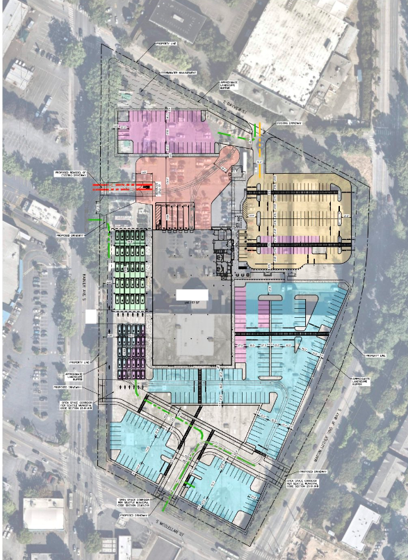 The proposal calls for a curb cut on Rainier Avenue emptying the giant parking lot onto a busy corridor with people walking, rolling, biking, and on transit trying to compete for space with motorists. Route 7 is supposed to achieve RapidRide status (eventually) and a busy trucking interchange where a bus lane should go is a terrible idea. A giant parking lot undermines efforts by safe streets advocates to improve station access to Judkins Park Station. Adding a curb cut on a major transit corridor across pedestrian overlays contradicts the Land Use Code and the Seattle Department of Construction and Inspections Director Nathan Torgelson could (and should) reject this aspect of the proposal outright.