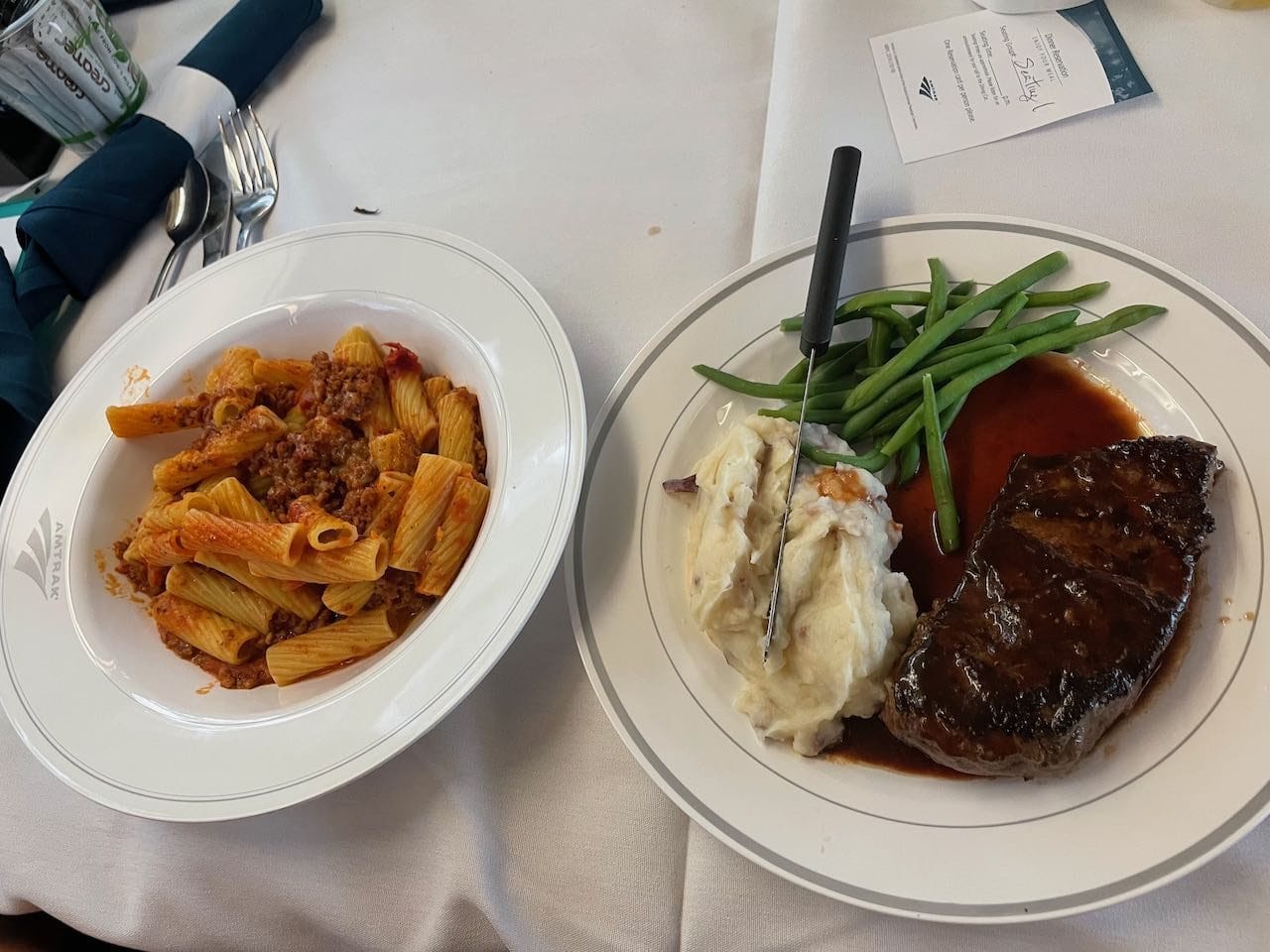Here is where I get to praise the staff on these trains. From the conductors to the dining staff to the attendants, everyone was patient and gave the answers they could. After Libby, I brought up our soon-to-be-missed connection with the conductor. He rearranged us and our baggage out of the Portland bound train and into the Seattle ones. The dining car provided free lunch for everyone on the train regardless of seating. It was beef stew and rolls, but still better than Fyre Festival rations. After the trains split in Spokane, the dining car picked up pizza, pasta bowls, and salads in Wenatchee. There was also cake for everyone.