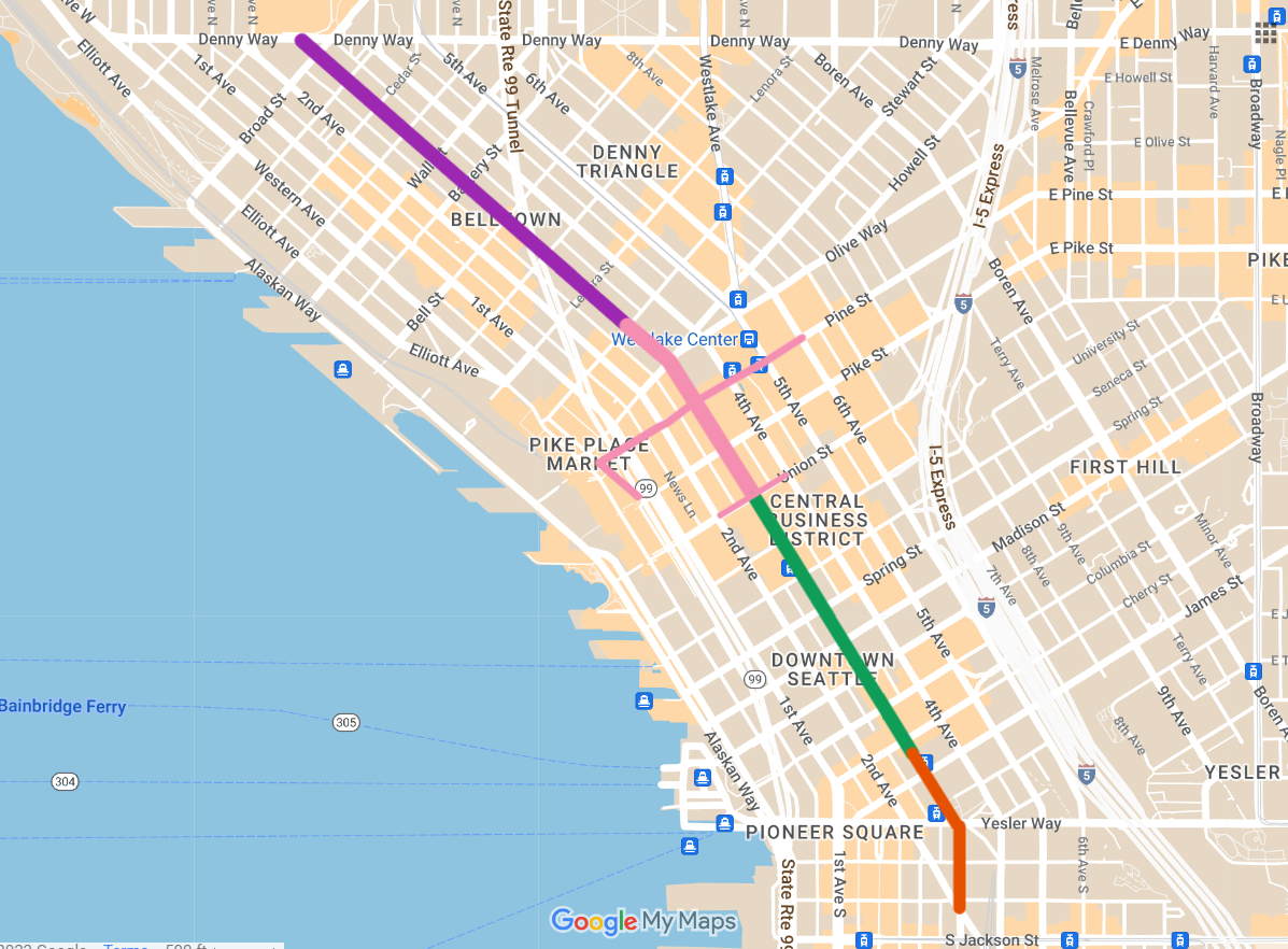 From a numbers standpoint, Third Avenue is one of the most successful transit corridors in the country. Prior to the pandemic, Third Avenue led the nation with 270 buses per peak hour and was also near the top for ridership at around 52,000 bus passengers per weekday. The street consolidates most Seattle bus routes into one corridor that ensures ease of transfers and creates a system that’s easy for visitors to the city to understand.