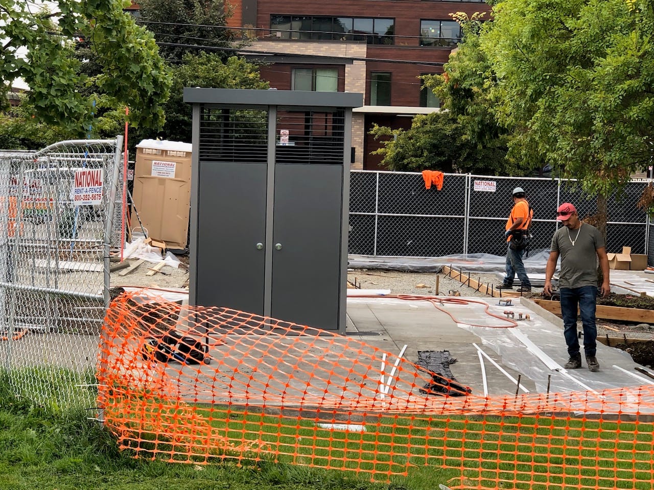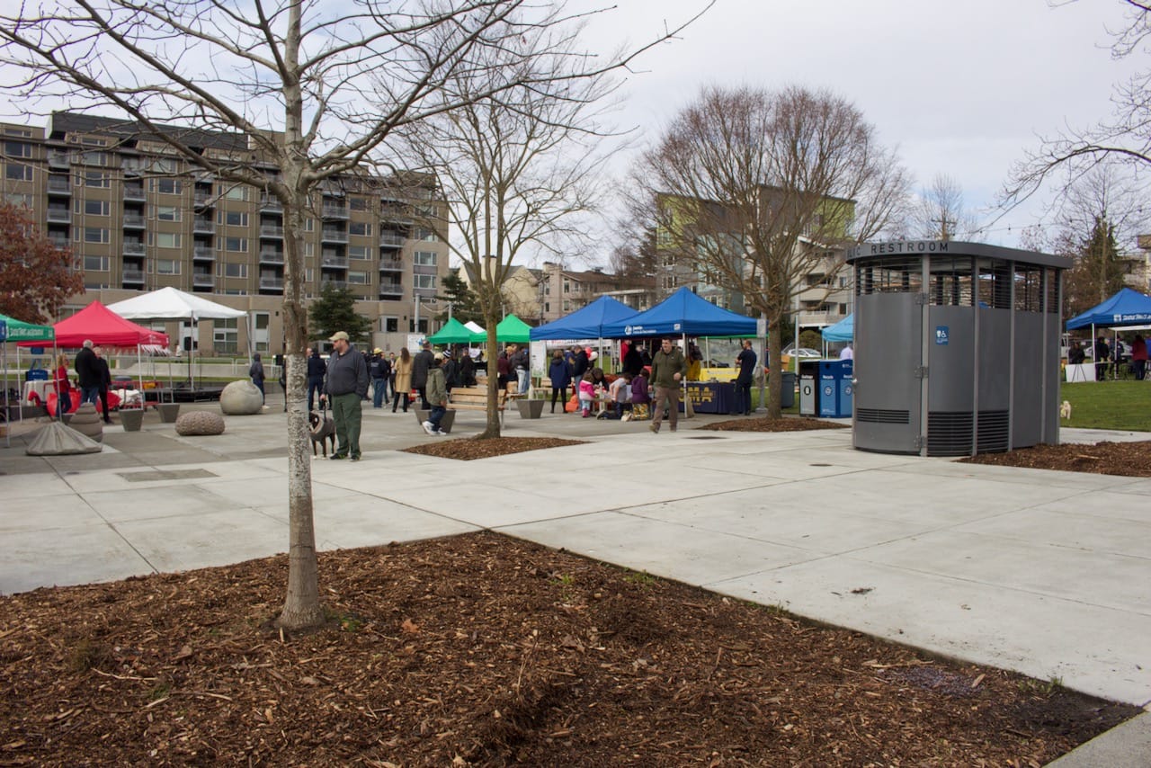 The last year wasn’t the first time fences went up around Ballard Commons. The park spent most of 2019 mostly fenced to install its Portland Loo, a public toilet that mixed aggressive architecture utility with the comfort of low bid governance. Plenty of people have pointed to the loo as its own attractive nuisance, and its installation over the summer (and turning off the kid-favorite water feature) as a punishment for parents rather than an effort to improve the park. Water was only temporarily restarted for the park when the loo was opened in fall 2019. Then it was shut off for the pandemic and kept off.