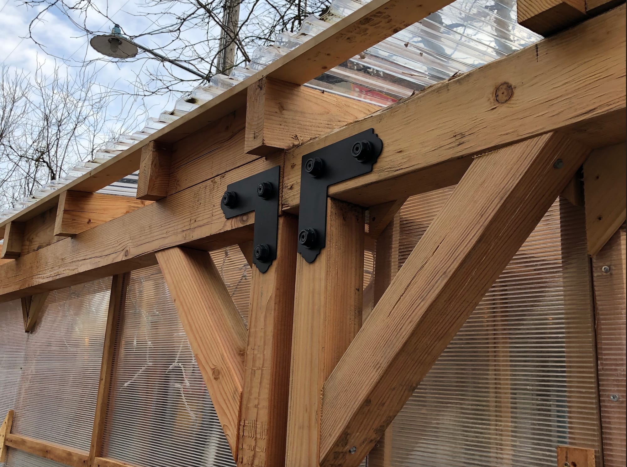 John being a gifted design idea person started researching. How we could solve the very interesting physics problem in an outdoor and open environment. We landed on the pergola idea. A friend named Alex Schenkar helped design it and got it pushed through to his structural engineer on staff. They ran it through to make sure it would be safe. Then we just kind of put it up in front of the Cut. It took two and a half days.