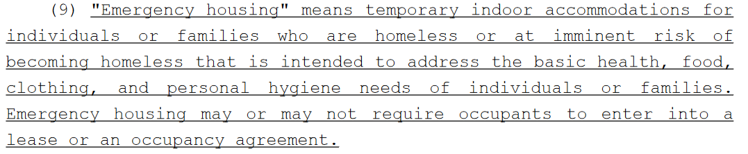 Specifically, HB 1220 does allow cities to impose “reasonable occupancy, spacing, and intensity of use requirements,” so long as these requirements don’t prevent a sufficient number of housing units from being built. With Bellevue’s severe lack of affordable housing units, including supportive and emergency housing, some providers argue that these imposed restrictions on emergency housing would cross this threshold.