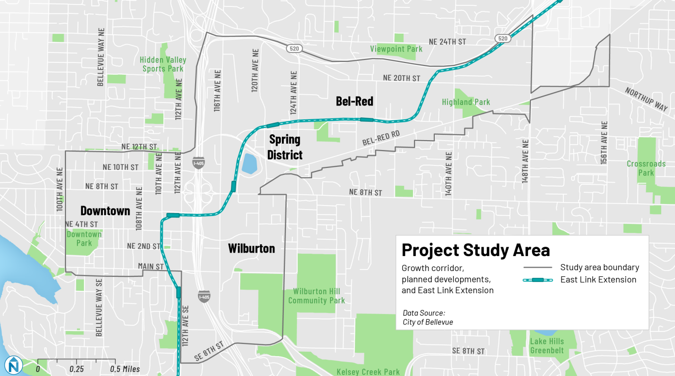 With the adoption of the plan, Bellevue will be poised to implement a number of pilot programs intended to improve how limited curbspace is used. One of those would encourage people to store their vehicles in off-street parking stalls — Bellevue has over 55,000 stalls in downtown, Bel-Red, and the Spring District — rather than on the public street. Other pilots include studying the availability of on-street loading in specific areas, and testing curb zones specifically for low-emission delivery vehicles, like ebikes, locker hubs, and electric trucks. All of these will be happening against the backdrop of the continued expansion of the city’s bike network along growth corridors near coming light rail stations, a plan being called Bike Bellevue.