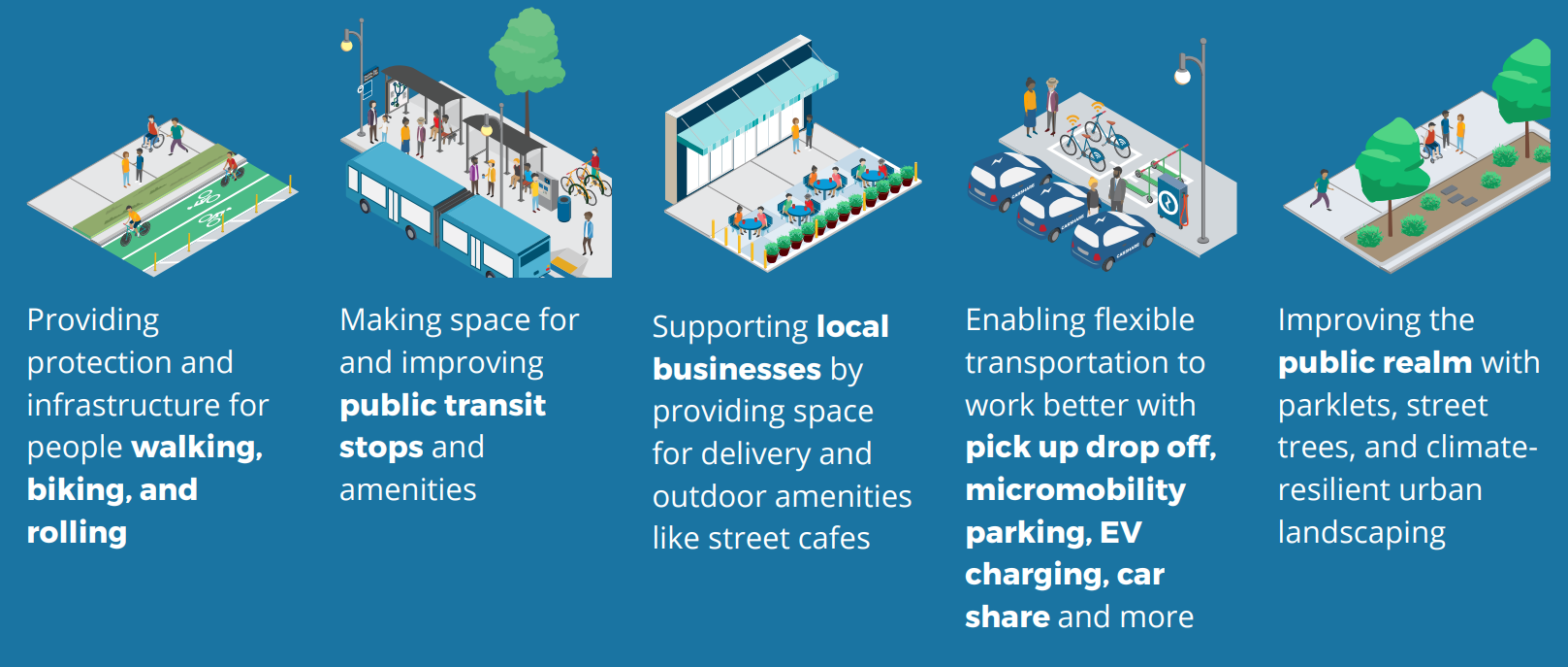 In the works since early 2022, the plan has been molded and shaped over many months of outreach and years of work to provide city leaders a toolkit for how to move forward with rethinking how those valuable spaces function to achieve broader city goals, like improved safety, vibrancy, and increased transit ridership.