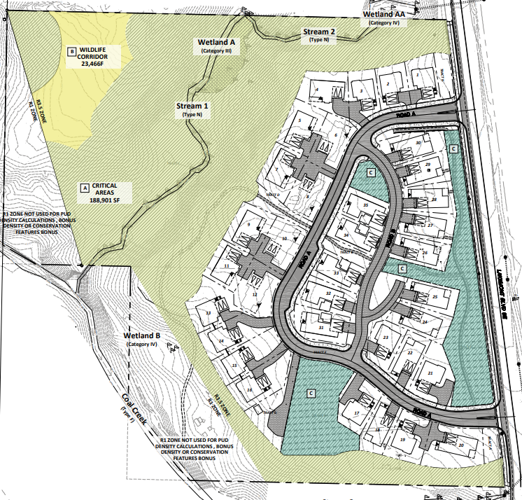 Embedded in Bellevue’s Coal Creek wilderness area are a handful of parcels that have been developed or zoned for single-family homes. In 2016 and 2017, the two largest parcels were purchased. Their developer seeks to build 35 new single-family homes on six of the 12.3 acres. After learning about plans to redevelop the two parcels, Save Coal Creek was formed by Issaquah Alps Trails Club in 2016 to convince the City of Bellevue to preserve the parcels as park land.