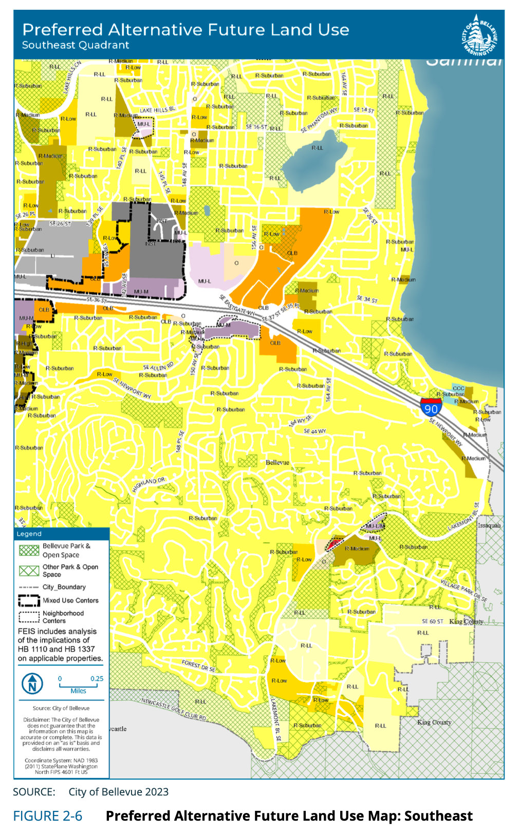 Ultimately, Bellevue’s preferred growth strategy is quite an evolution in the way that land use could unfold in the city. Going from a sprawling mid-century, post-war suburb with one or two areas of regional commerce and high-density development to a city with middle housing sprinkled throughout, numerous mixed-use centers, and an urban highrise core beginning to rival Downtown Seattle is no small thing.