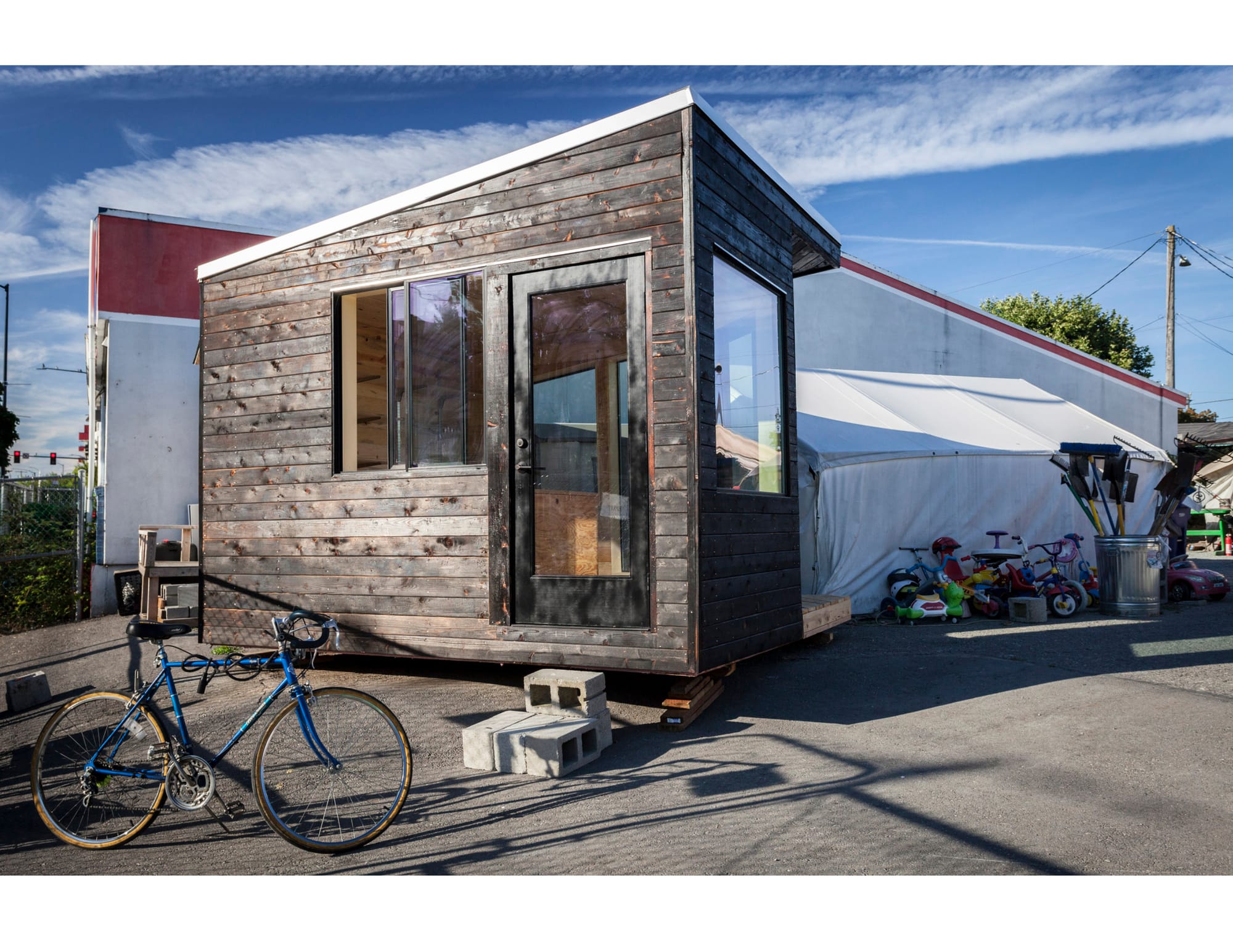 This project shows the social impact that architecture and architects can have. The Hub serves as the security gate for the Othello tiny-house village for people experiencing homelessness. It was designed and built by high school age girls with the help of local designers as part of an after school program intended to foster equality in the male dominated building trades. The project served a crucial role in Othello Village and provides an aesthetic anchor to the city sanctioned encampment.
