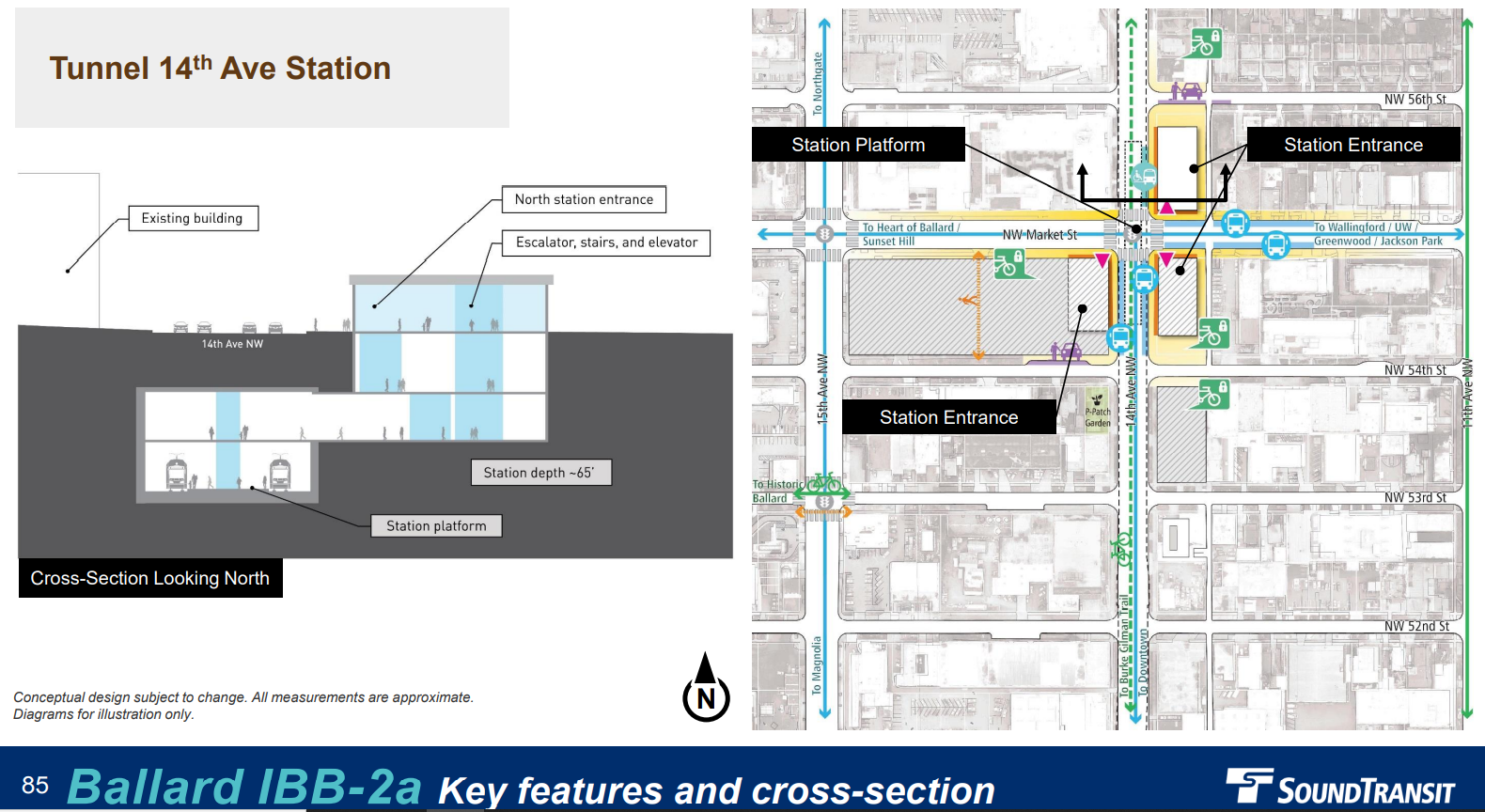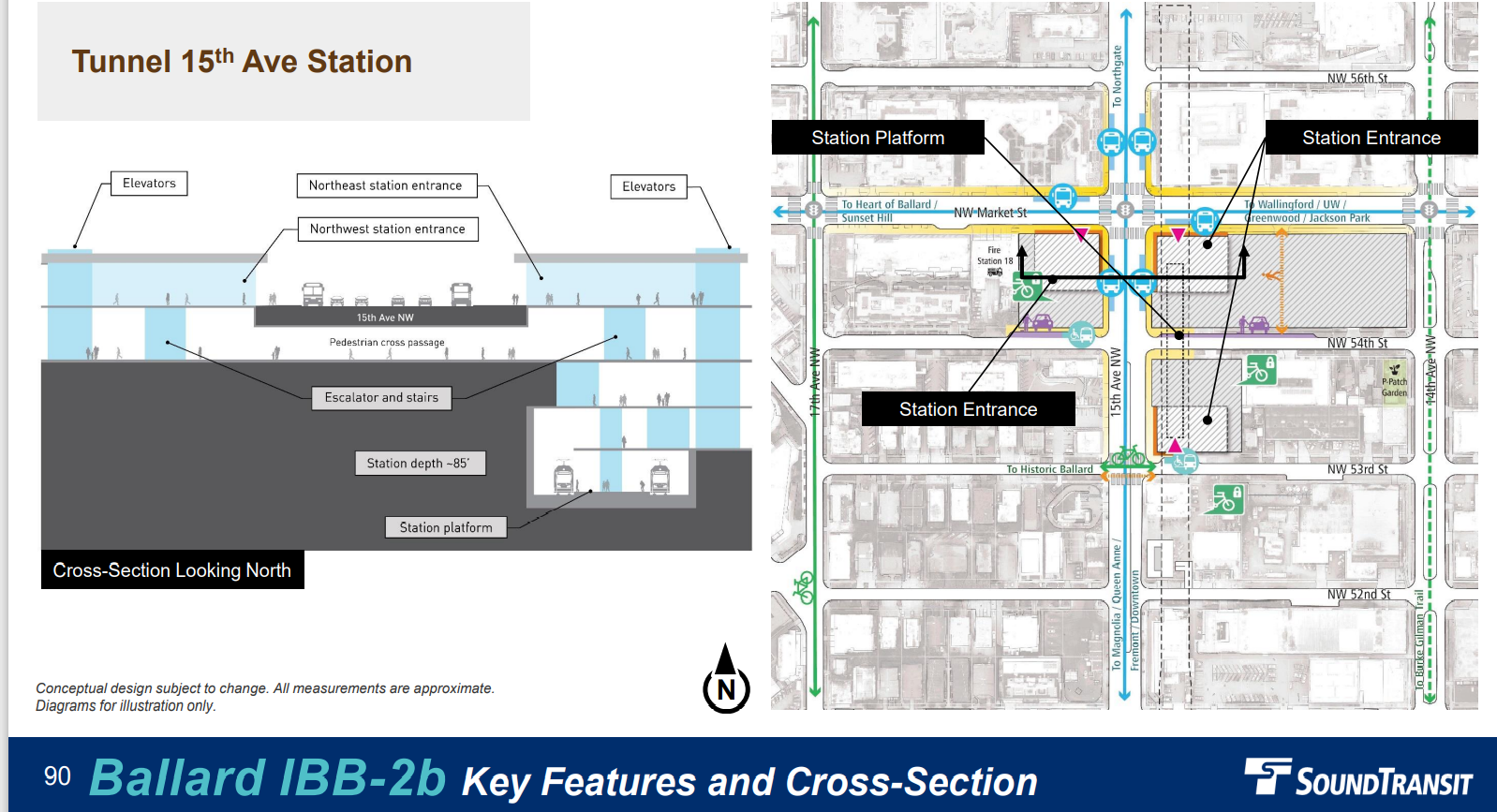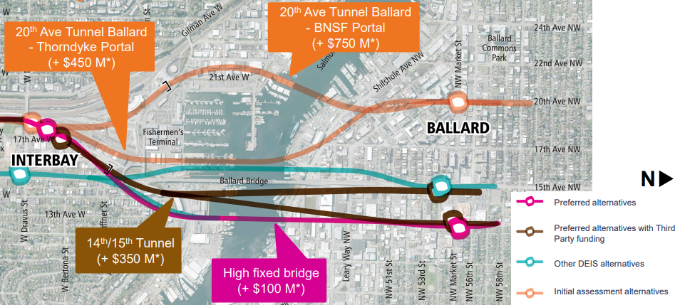 Tunnel 15th Avenue Station is projected to cost $200 million more than Tunnel 14th Avenue Station, but placing a station entrance west of 15th Avenue would be worth the added expense if Sound Transit and the City of Seattle can find the budget for it. The agency has said it will require third party funding for options that are significantly more expensive than the preferred alternative. A tunnel station at 20th Avenue NW is likely to be pricier still, but Seattle Study is urging a study to confirm that assumption — which had gotten the option eliminated earlier in the process. This would be wise given how much the earlier estimates were off.