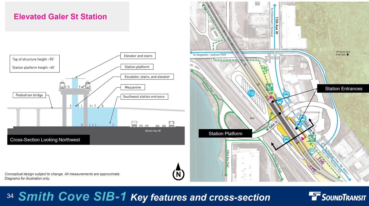 Smith Cove will be one of the less bustling stations, with a projected 2,600 daily riders — 65% of them walk-ons. But it could coax some cruise passengers out of cars, and the redevelopment of the Armory site could increase the local population and thus rider demand. Sound Transit projected the station area population at just 800 given the prevalence of industrial uses and office space in the area. In an op-ed in The Urbanist, Michael Eliason kicked around putting 6,300 homes in an “Interbay eco-district” in and around the Armory site which would change that complexion.