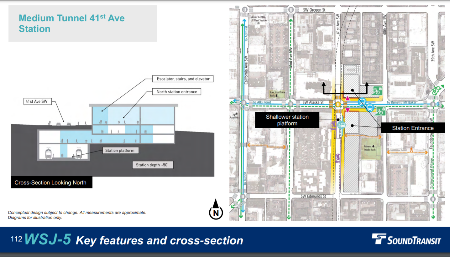 Recommended feedback: Prefer Medium Tunnel 41st Avenue Station [WSJ-5], but study a refined Elevated Fauntleroy Station that would reduce residential displacement and costly property takings.