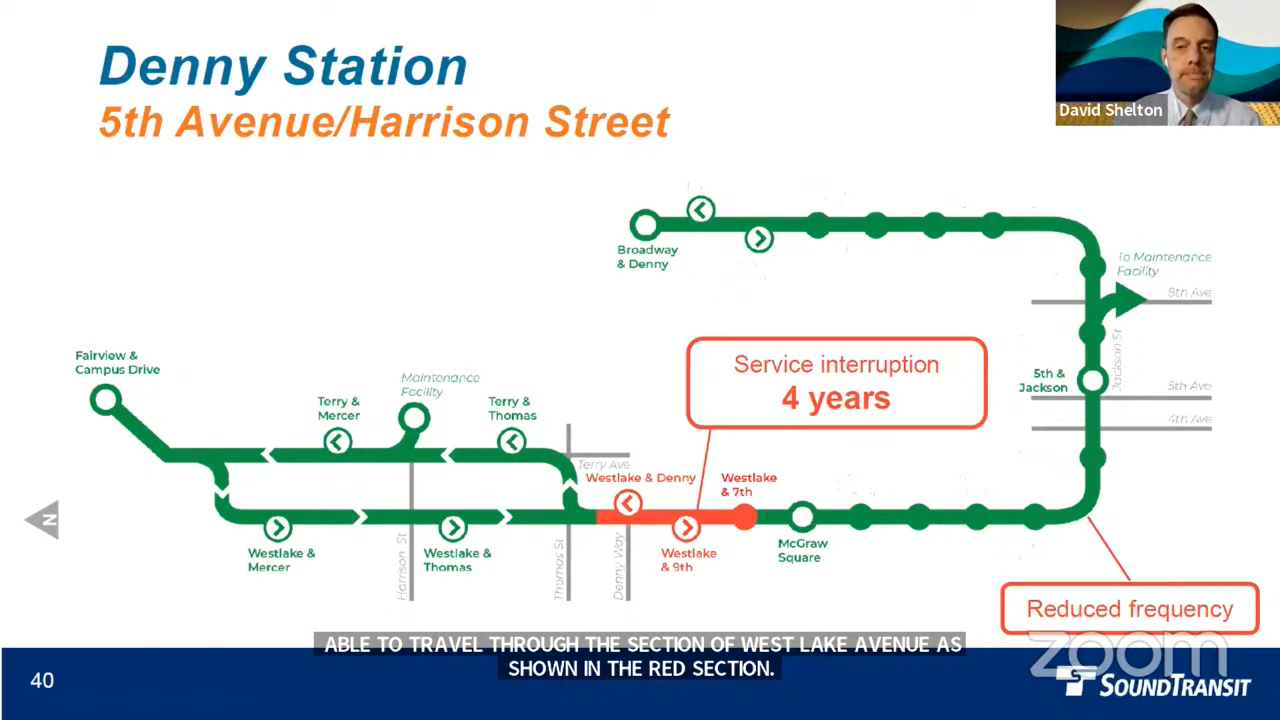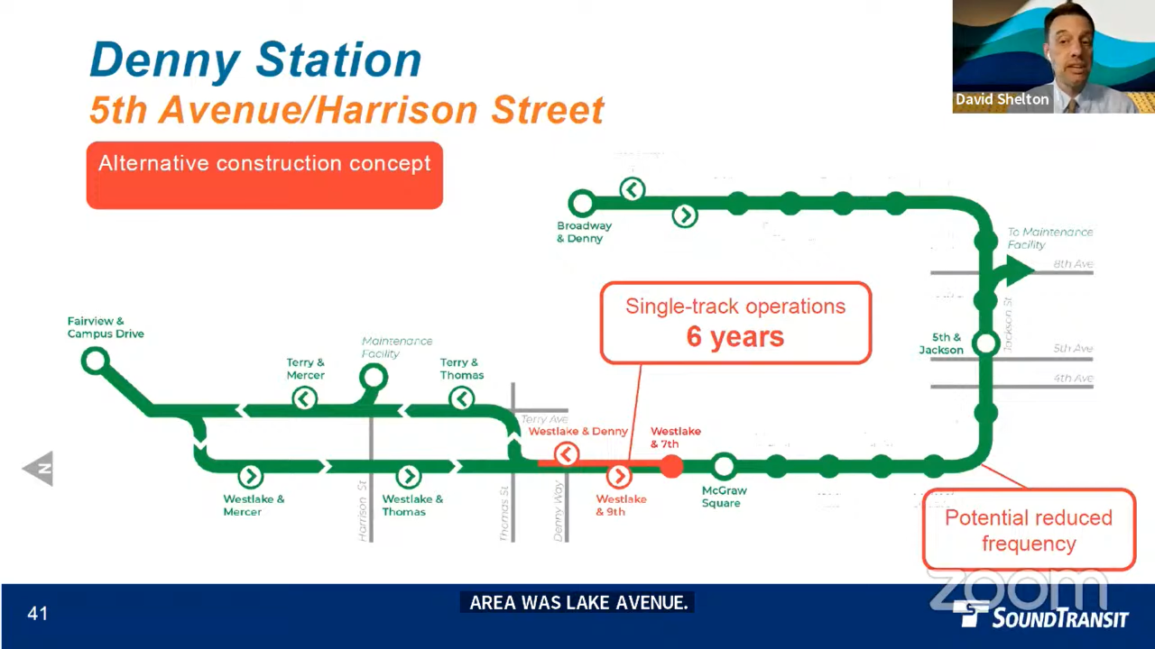 Sound Transit has studied options to mitigate these disruptions, but some impacts are unavoidable: “Alternative construction approaches that could allow for single-track operations of the streetcar and maintain access to the maintenance facility during construction are being considered for this location that could substantially reduce the impact to streetcar service through the Westlake Avenue/Denny Way portion of the route.”
