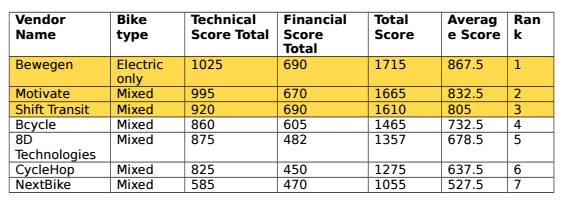 Selecting a provider who will bring in an all-electric fleet would mean that the current bikes, used in the system since launch in October 2014 and purchased by the City this Spring in order to keep the Pronto system operating in the black, would not be used for the expansion.