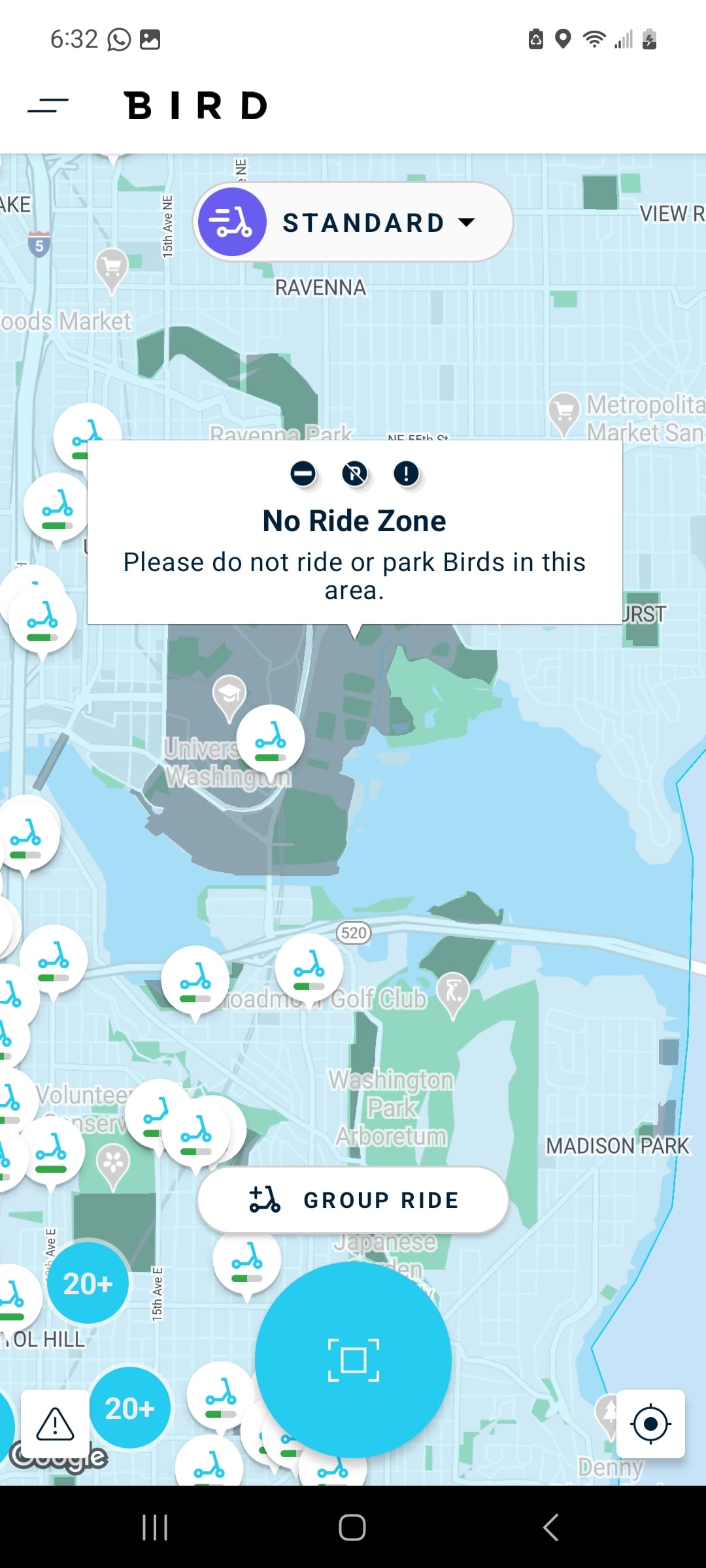 While parks are a bit more accessible on Bird, the entire University of Washington campus is a no-go zone. In contrast, Lime vehicles are allowed on campus — a testament perhaps to a better working relationship with the university.