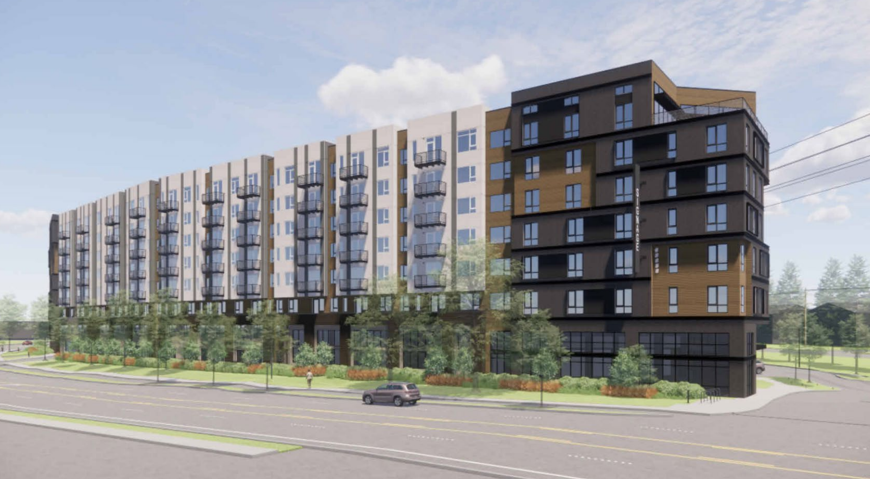 The 322-unit apartment building on 120th Avenue NE would be the tallest building in Bothell, taking the place of a sprawling parking lot with a hot dog stand at the center of it. That project is taking advantage of a newly approved density bonus, with the developer gaining additional height in exchange for providing 32 units of subsidized affordable housing, apartments targeted at households making 60% of King County’s median income.