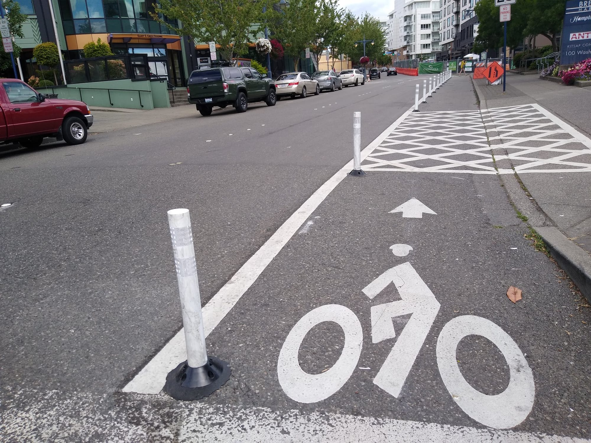 “I think in Bremerton at the moment for existing roads, we only have so much space to work with,” Coughlin said. “To me, the plastic bollards are a good step to have some sort of visual physical barrier there for cars and bikes…I think we’ll get there eventually.”