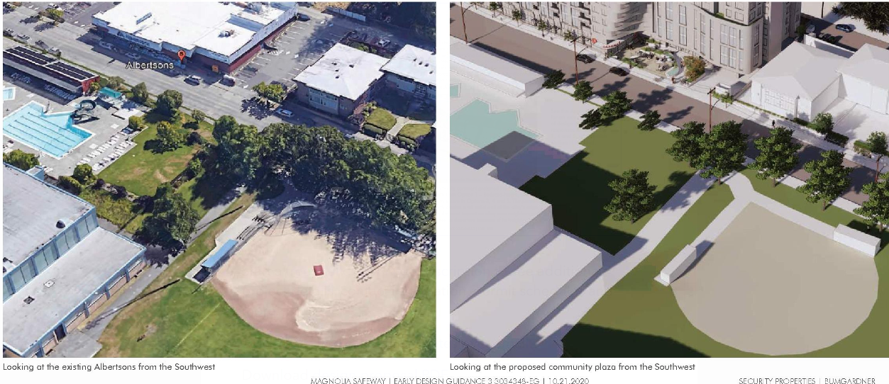 Seattle For Everyone, Share The Cities Action Fund and The Urbanist will be posting specific talking points for this project on our social media. In general, your comment should champion the green bonus of an additional floor. The bonus allows the building to contribute 133 new homes, and at least that many new neighbors, able to live in the exclusive community of Magnolia. Highlight that living above a grocery store means new neighbors will live less car-dependent and more ecofriendly lives. The builder has been very responsive to the community. They’ve prioritized a sunny plaza, as well as addressing shadow concerns with extra setbacks.