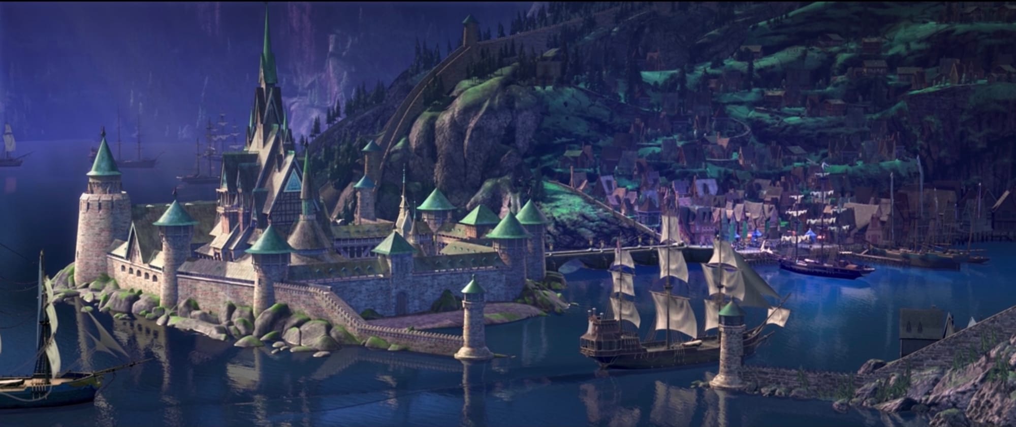 Regardless of the level of density, Disney cities have awesome transit. The trains cross the countryside in just the perfect way to allow a sweeping view of the next location. Fast, efficient, built for moving the plot along. It is the best kind of transportation drama, a breathtaking entrance to a new life without delay.