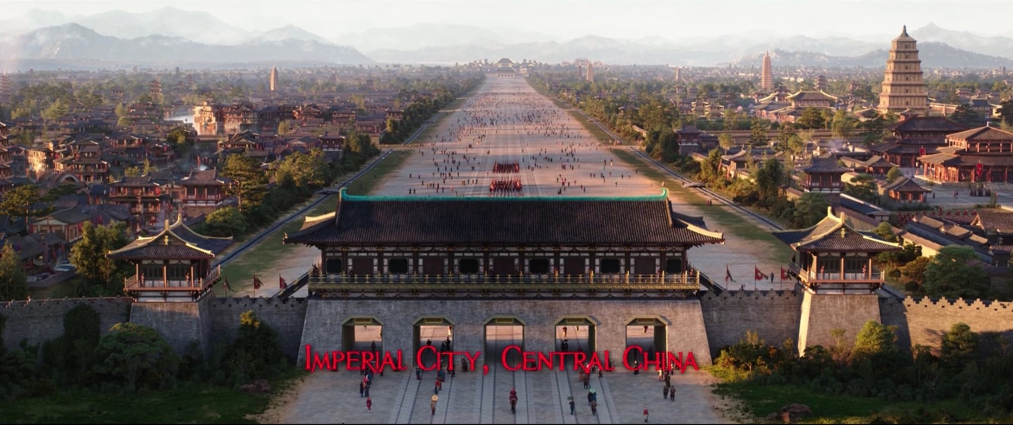 Mulan bookends in the Imperial City of China. Wide shots of the Imperial Palace and temples set up the power of the Emperor (played by Jet Li!) and importance of his dynasty before cutting back to Mulan’s small village. Unfortunately, the plot requires the palace to shrink in the last act to maintain drama. It sells short the power and importance of the location and by extension minimizes the proportions of Mulan’s unlikely success.