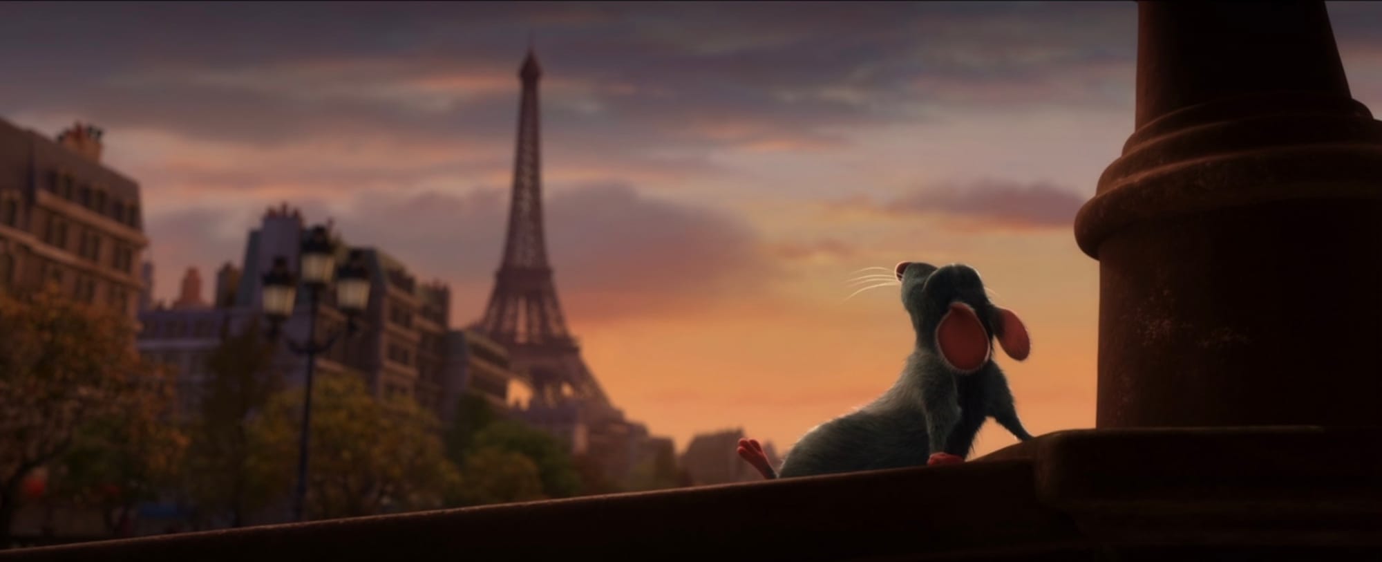 Ratatouille is in Paris because of the title pun, not because of Paris itself. The location is a shorthand for the best food in the world (as they say in the first lines of the film). But the city is quite empty of people and not a compelling part of the story short of long gazes at the Eiffel Tower. Most of the action happens in the kitchen. The movie’s villain, critic Anton Ego, is so evil he has a British theater accent. (Specifically, Peter O’Toole’s.)