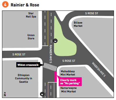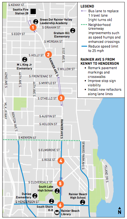 Now, on the heels of yet another life lost on Rainier, SDOT is proposing to lower speed limits on every arterial street in the Rainier Beach urban village right away. This includes not just Rainier but Seward Park Ave S, Renton Ave S, and S Henderson St. They also intend to make immediate improvements at six key intersections, improvements which vary in intensity.