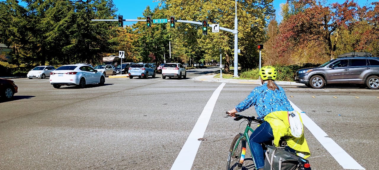 Over recent years, infamously car-dominated Bellevue had been making significant progress toward making it easier to get around without a car, but that progress has mostly stalled out. One big blow was the recent gutting of the ambitious Bike Bellevue plan, which was envisioned as a quick-build network to right-size some of Bellevue’s most dangerous streets, while at the same time carving out space for people to bike. In their deliberations, the Bellevue City Council made it clear that they don’t support reallocating existing vehicle lanes except as an absolute last resort.