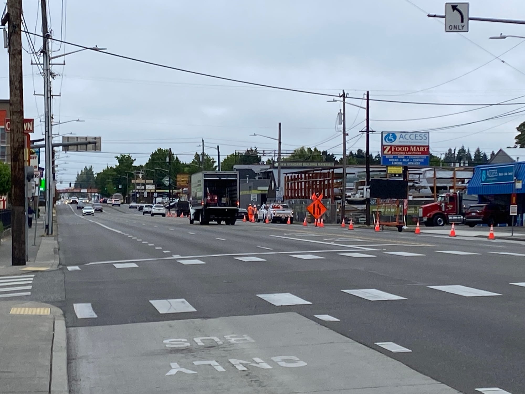 Currently, Aurora Avenue N is configured as a seven-lane road with buses running along the curbs, but feedback we heard suggests studying solutions that reposition the buses and asks whether the road really needs that much space dedicated to cars. With the Vision Zero campaign to end traffic deaths by 2030 endorsed as a guiding principle by both SDOT and the Washington State Department of Transportation (WSDOT), it would suggest the current configuration is at odds with their own outlined goals.