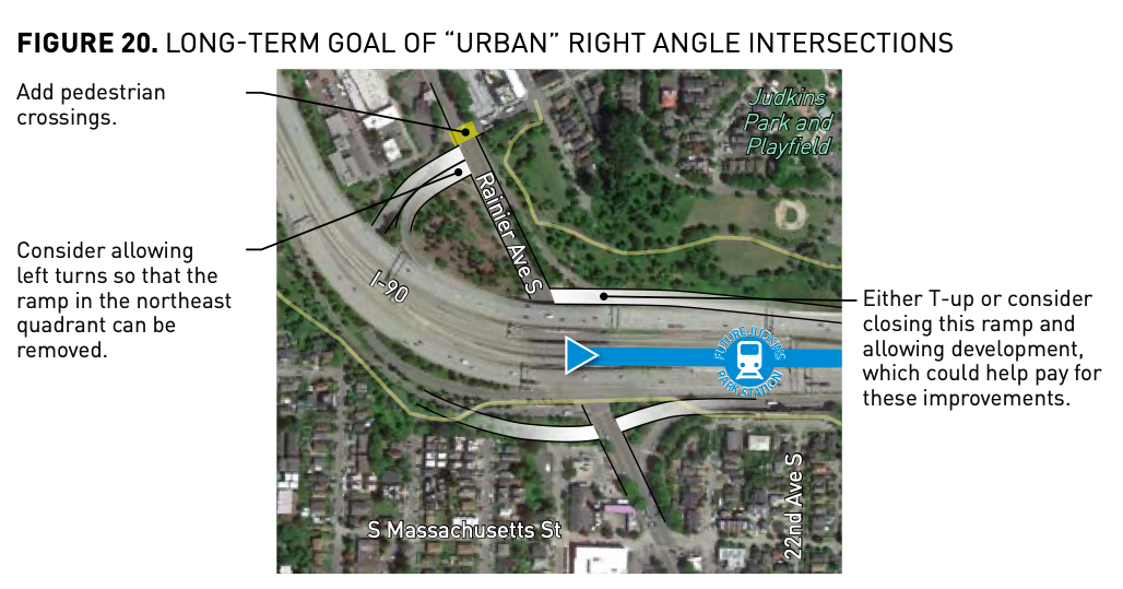However, even if improvements are made to Rainier Avenue, the presence of the I-90 freeway ramps will continue to present safety concerns. In response to this problem, the station access report offers up recommendations that would decrease traffic speeds and increase pedestrian visibility.