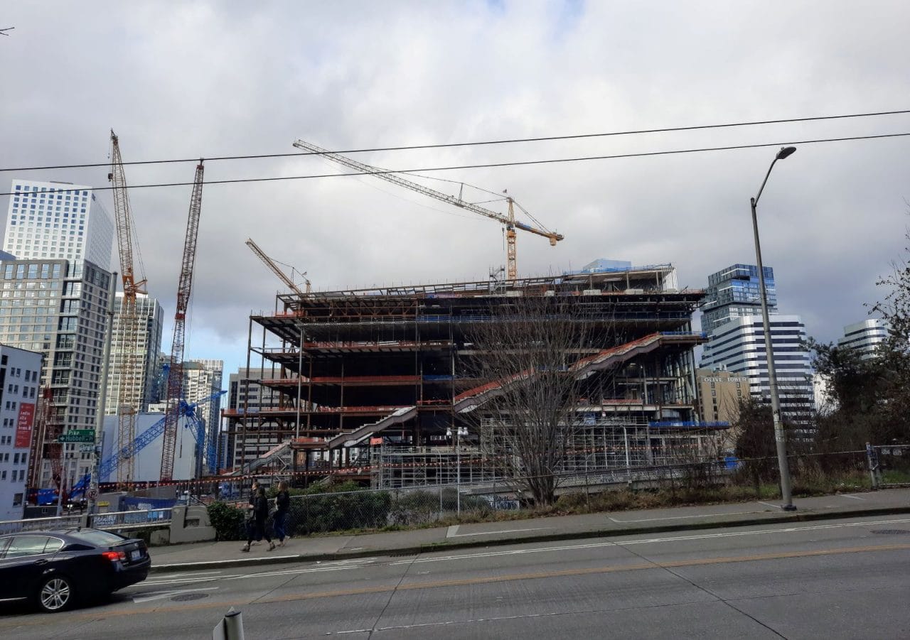 The livelihoods of many families is on the line, and a slowdown in housing construction could in turn exacerbate the housing affordability crisis. Bellwether and Plymouth Housing’s affordable highrise apartment project in First Hill was among the projects stalled out and facing a delayed opening, Bill Ketcham, general manager with Turner Construction, said in a KUOW interview. Turner is the largest domestic contractor in the country and pulled in $14.4 billion in revenue in 2020.