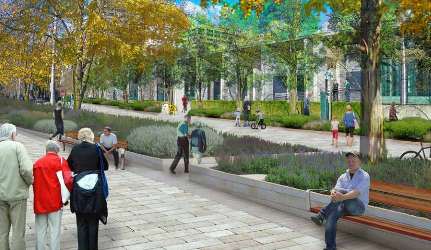 Not to be confused with the short segment of Terry Avenue that will be vacated underground through the Convention Center expansion, the Terry Avenue promenade will be located along the First Hill segment of Terry. Because land is so expensive in First Hill, the Seattle Parks and Recreation Department has been unable to procure any land in that neighborhood for a new park, already pressed for open space. Utilizing a quiet stretch of Terry Avenue alongside the Frye Art museum, the promenade would pedestrianize the street and encourage users to treat the area more as open space than as street. The full Terry Avenue green street would stretch from Spring Street all the way to Terrace Street.
