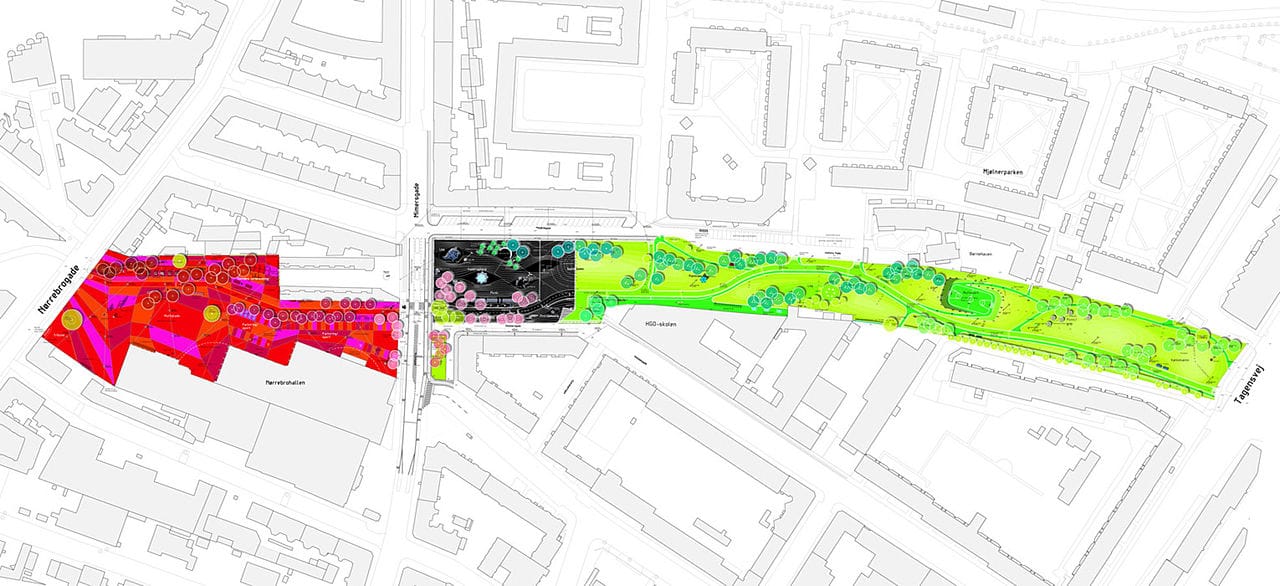 The Superkilen project has helped create a more harmonious community in Nørrebro where different communities and cultures can co-exist, giving the area a great foundation to develop into an environmentally sustainable community. But it also created one of the world’s finest examples of the concept of Just Sustainabilities.