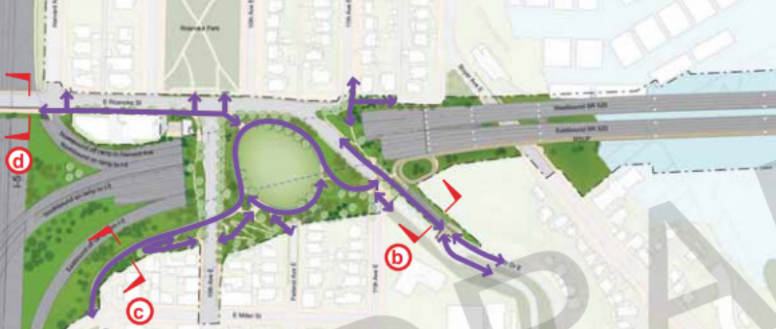 Without the tunnel, people connecting to and from the lid — and a planned extension of the SR 520 multi-use trail across Lake Washington — with points west of 10th Avenue E will need to use surface streets, or may instead opt to cross I-5 at Roanoke Street and head through the Eastlake neighborhood. WSDOT, in its justification for deleting the connection, seems to be relying heavily on assuming that many people will do the latter, despite the generational opportunity that the lid represents to repair long-severed street grid connections and create new ones.