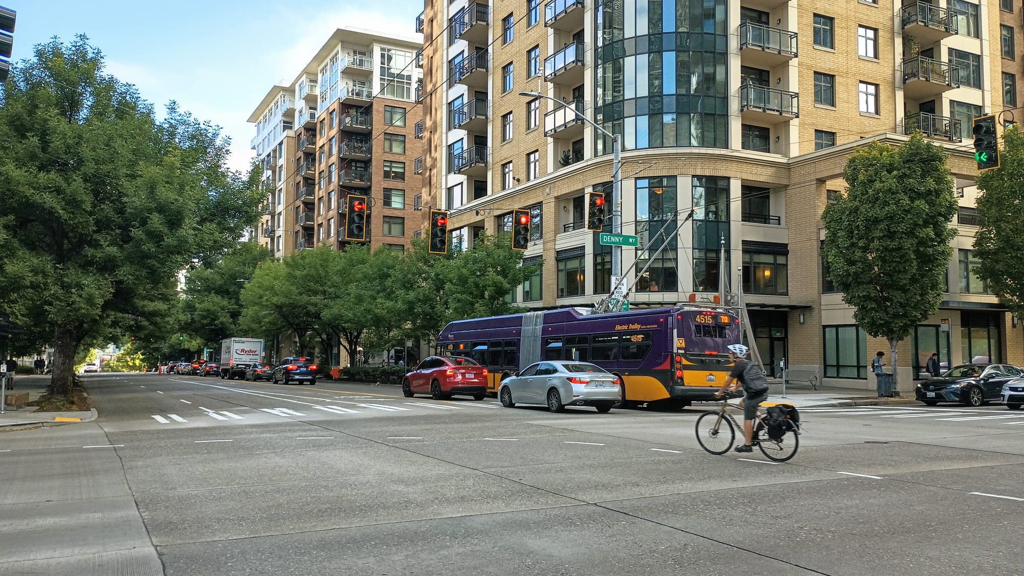The Denny Way repaving will be putting in place the infrastructure that would be needed to add new pedestrian crossings at two intersections where crossing is very dicey for pedestrians: Boren Avenue N and 8th Avenue N. However, it won’t fund the new signals themselves. The project will also be adding paint-and-post curb bulbs to reduce pedestrian crossing distances at some major intersections, like 9th Avenue N and Boren Avenue. But for the most part, the opportunities afforded by the major repaving project were left by the wayside.