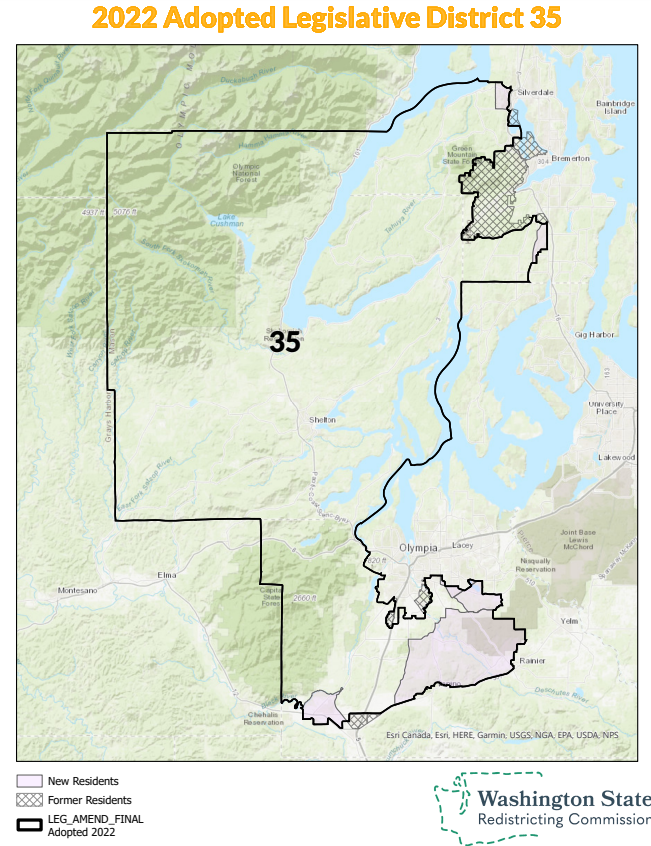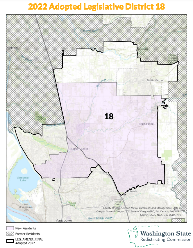 Somehow Democrats don’t appear to be running anyone in the 17th yet, despite an even partisan split on paper. Maybe some late entries are still to come. In the old 17th, Governor Inslee endorsed Democratic challenger Daniel Smith in 2020, but he came up nine points short of unseating Rep. Lynda Wilson (R-Vancouver). The district has swung in the direction of Democrats, but only to the point of being a tossup.