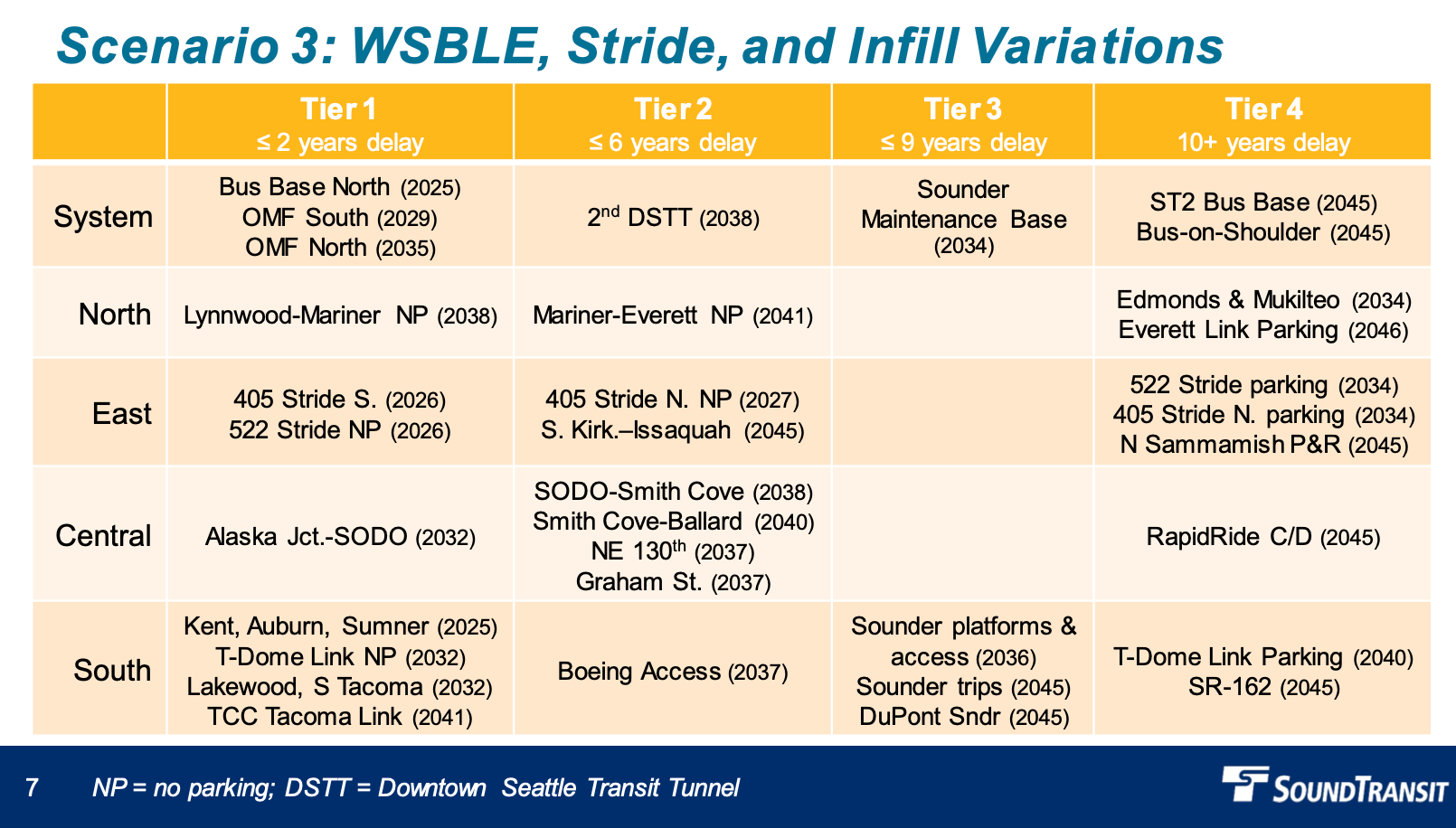 - Create four tiers for programmatic timing and actions of Sound Transit 3 projects.