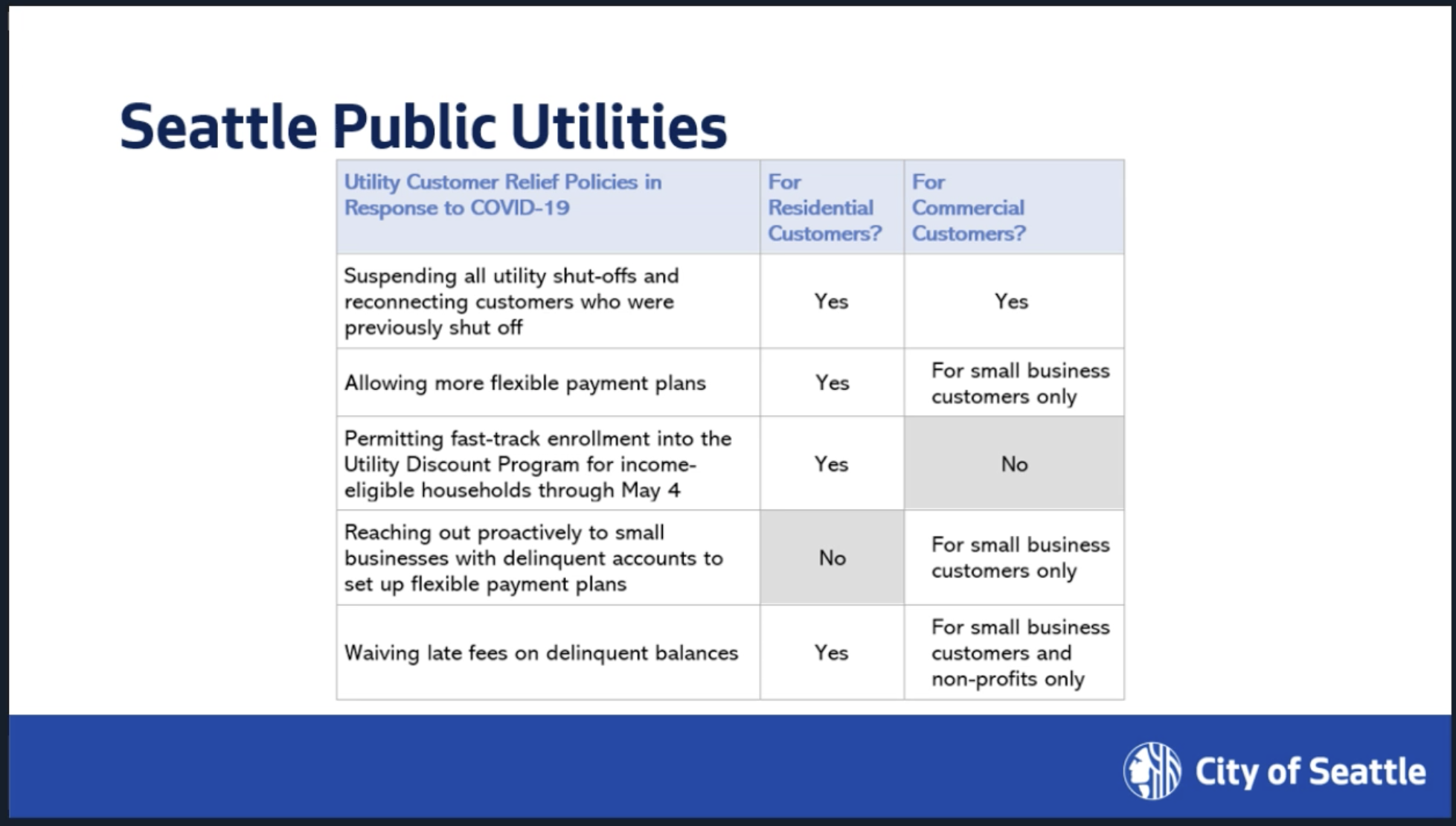 And, according to Seattle Public Utilities and Seattle City Light, no one is going to lose water or electricity during this pandemic. The unity with which utilities suspended shutoffs, fast-tracked reconnections, and waived late fees makes one wonder why these punitive measures are in place to begin with.